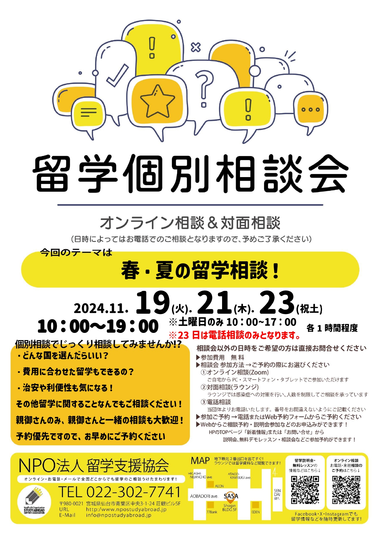 ※23日(土)はお電話相談のみ