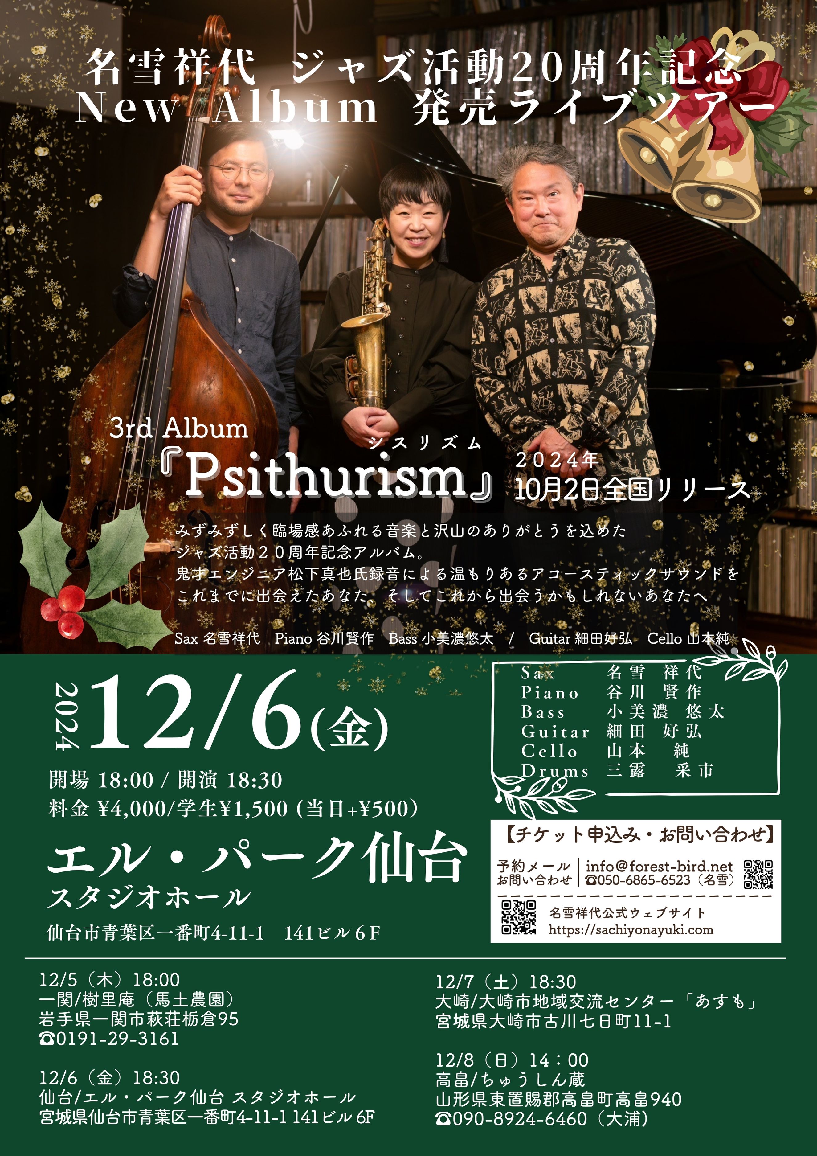 当日は映像とジャズのコラボや、クリスマス感ある演出など、ジャズが詳しい方も、そうでない方もお楽しみいただけるコンサートです。