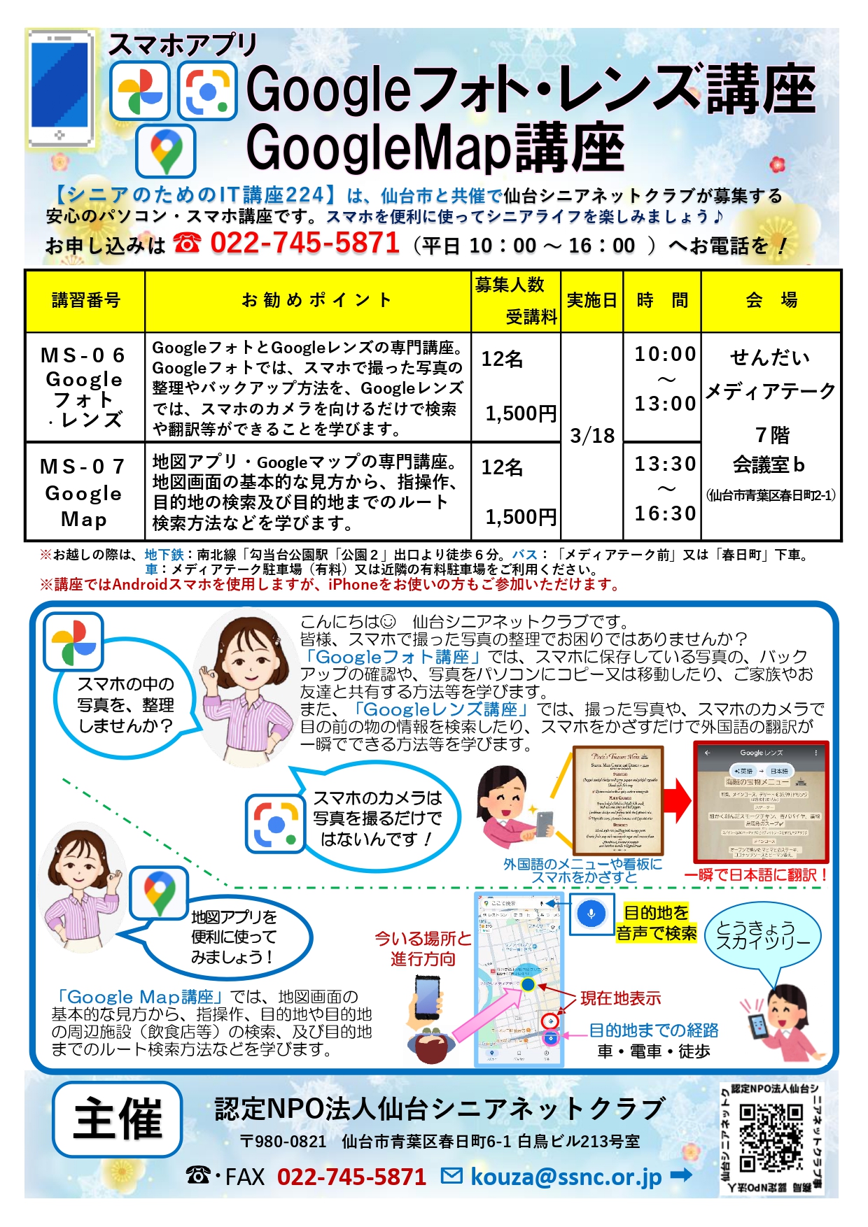 「Googleフォト・レンズ」・「Googleマップ」講座のご案内