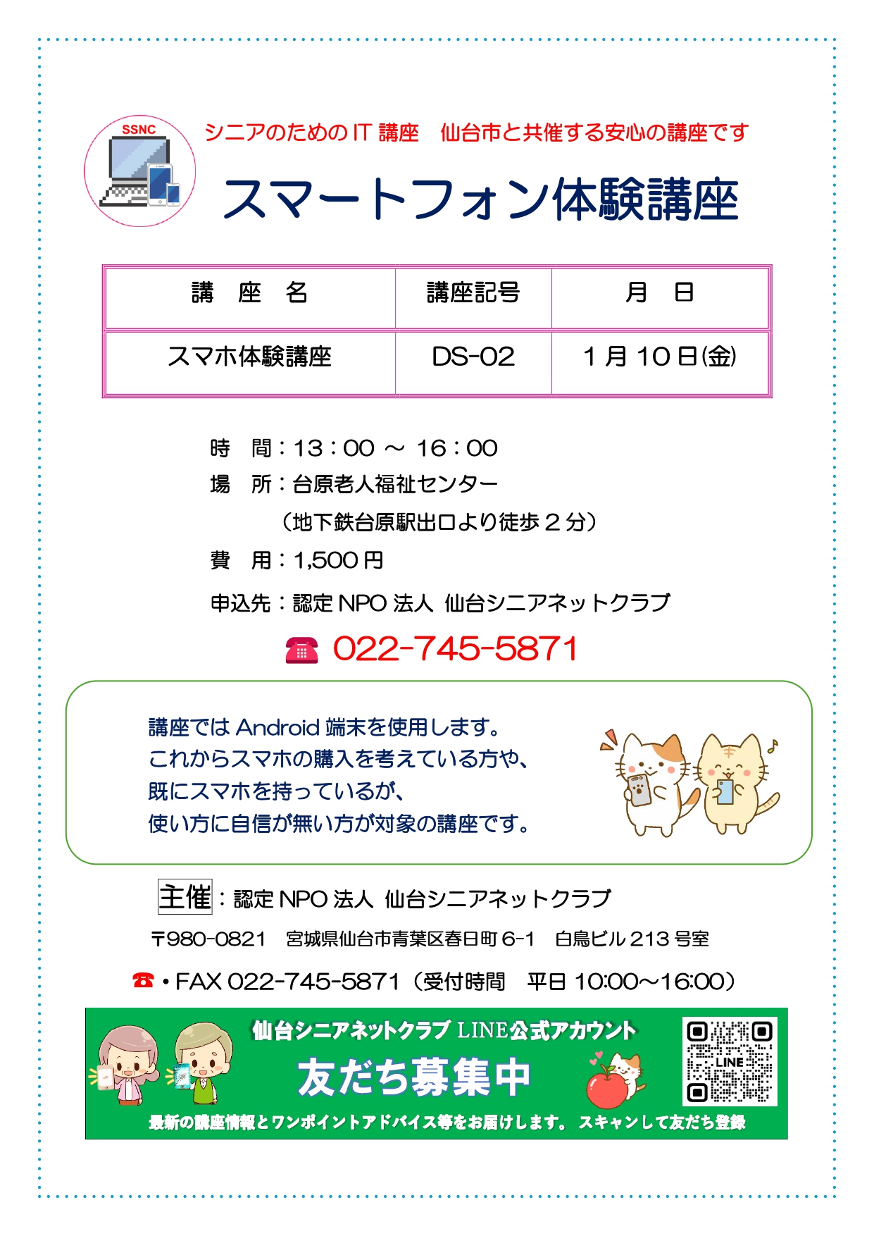 「スマートフォン体験講座」のご案内