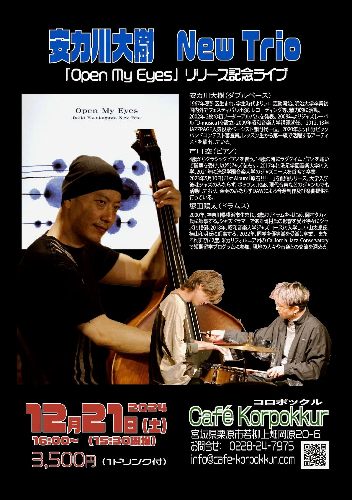 12月の「korpokkur Live」は実力派ベーシストの安カ川大樹のニュートリオが登場します。