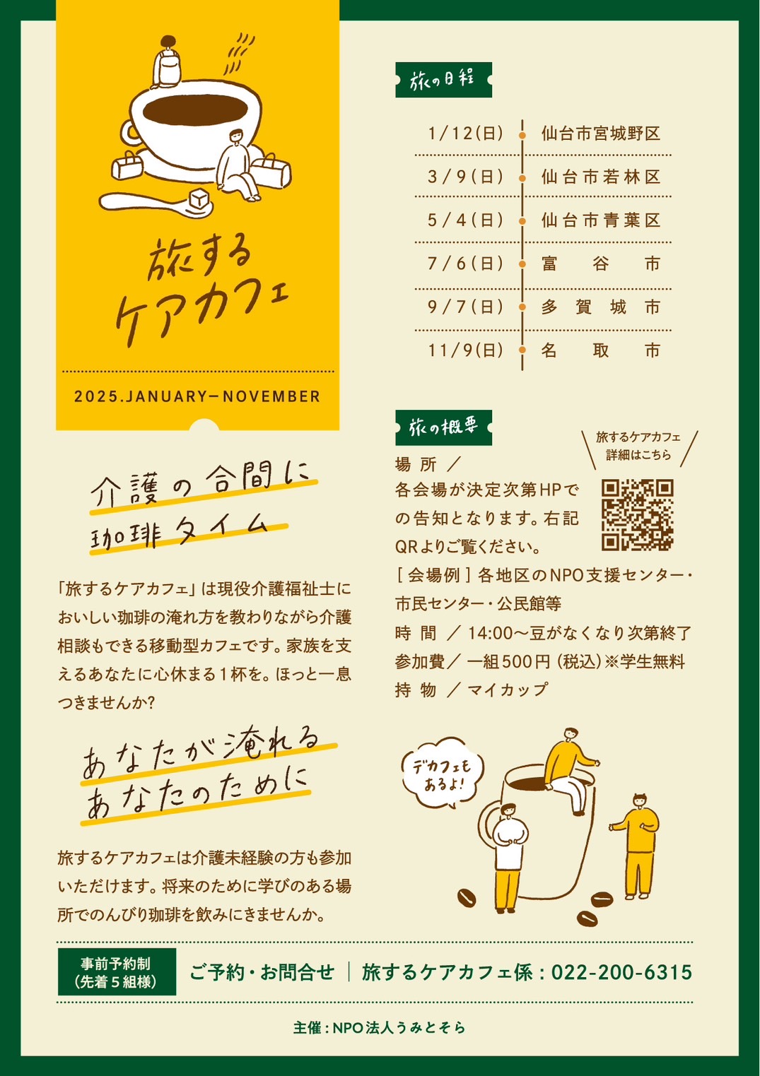 主催 NPO法人うみとそら 旅するケアカフェ係 まで
