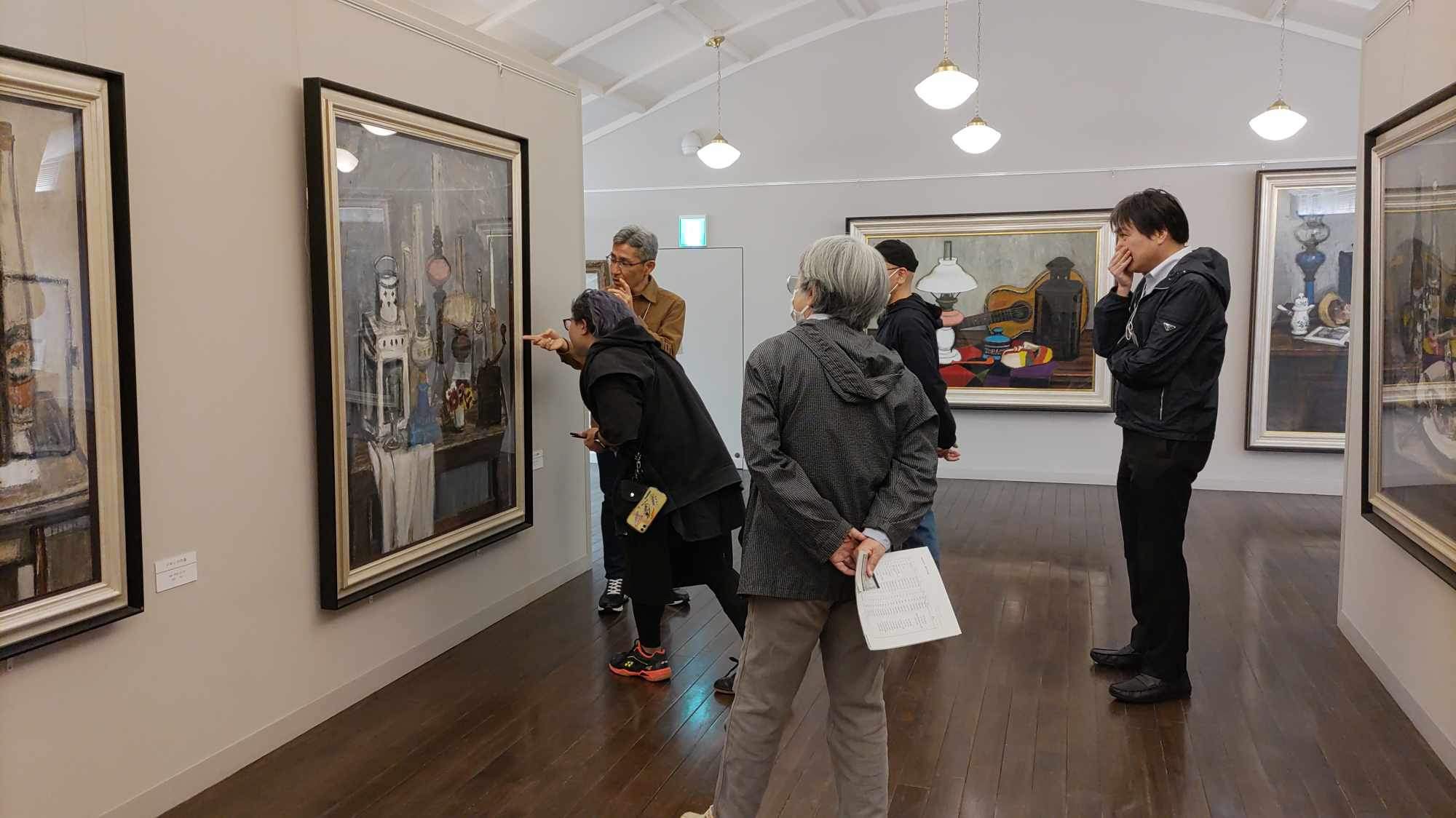 対話型鑑賞プログラムということで、グループで言葉を交わしながら鑑賞しています。