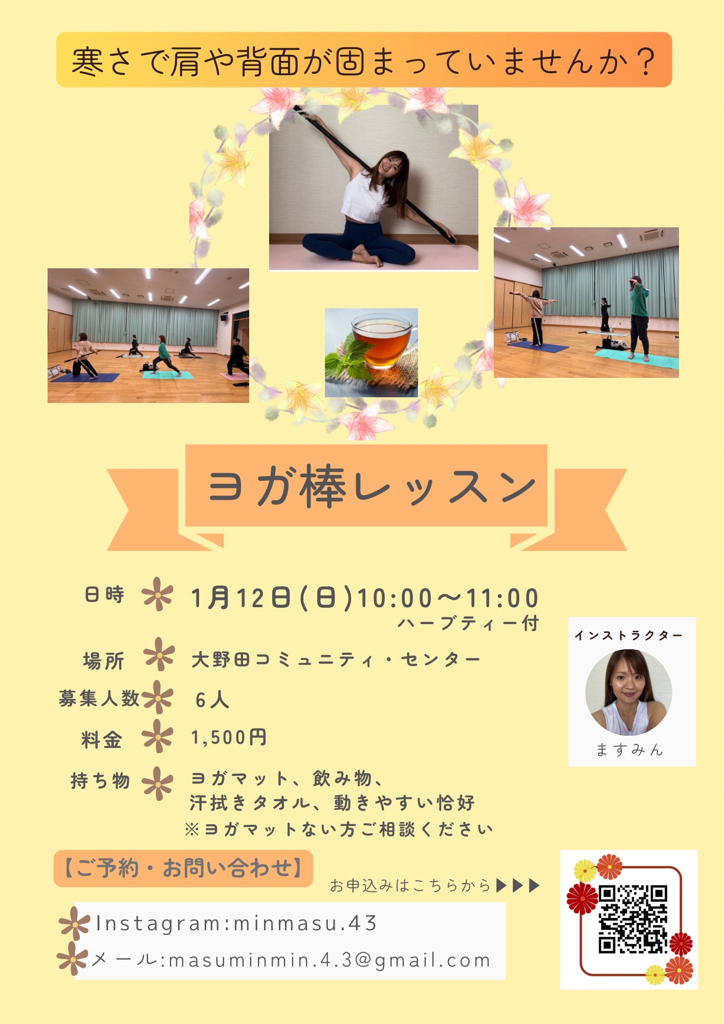 【ヨガ棒レッスン開催のお知らせ】