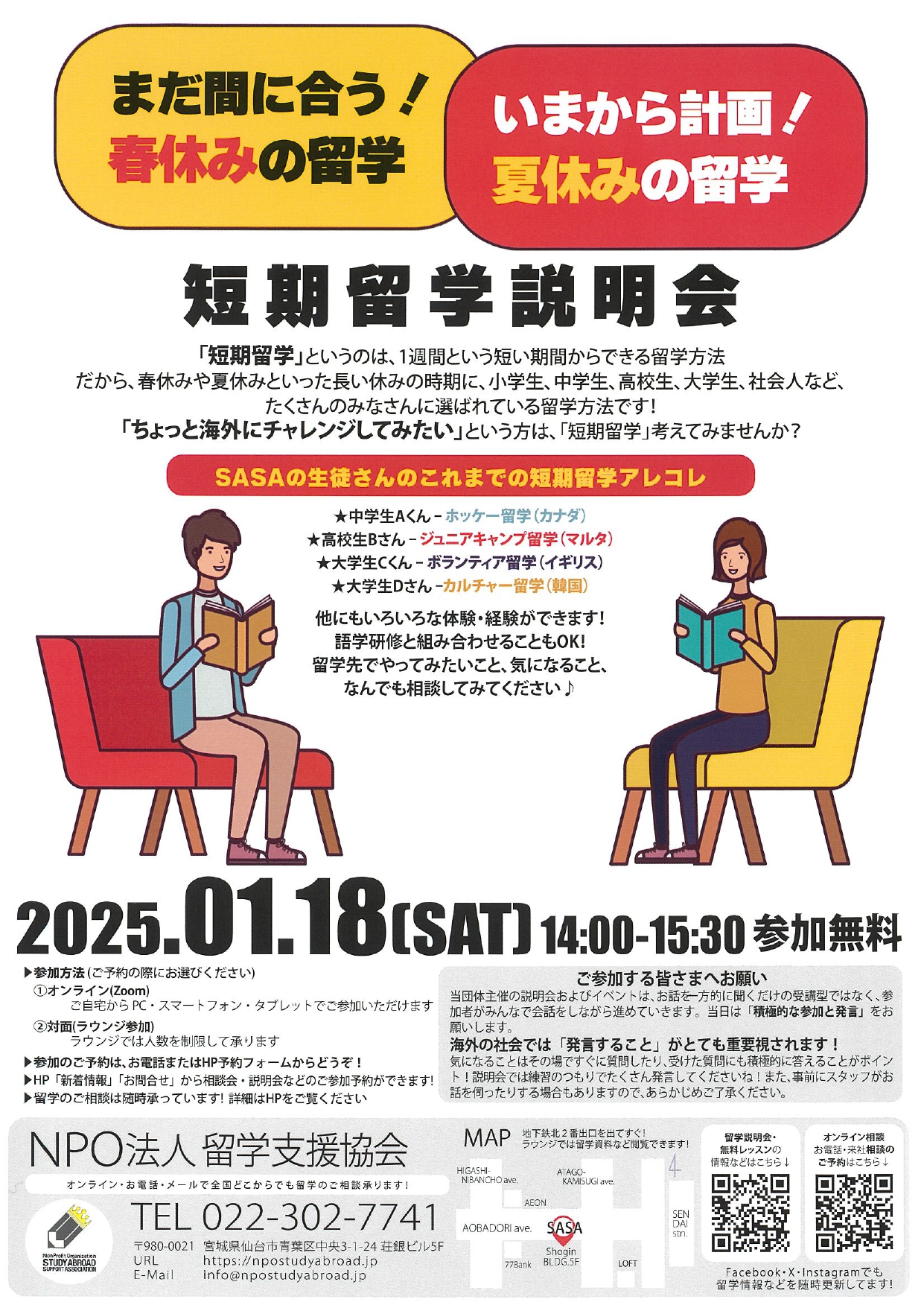 https://npostudyabroad.jp/?p=2276ご予約は前日の18:00までにお申し込みください
