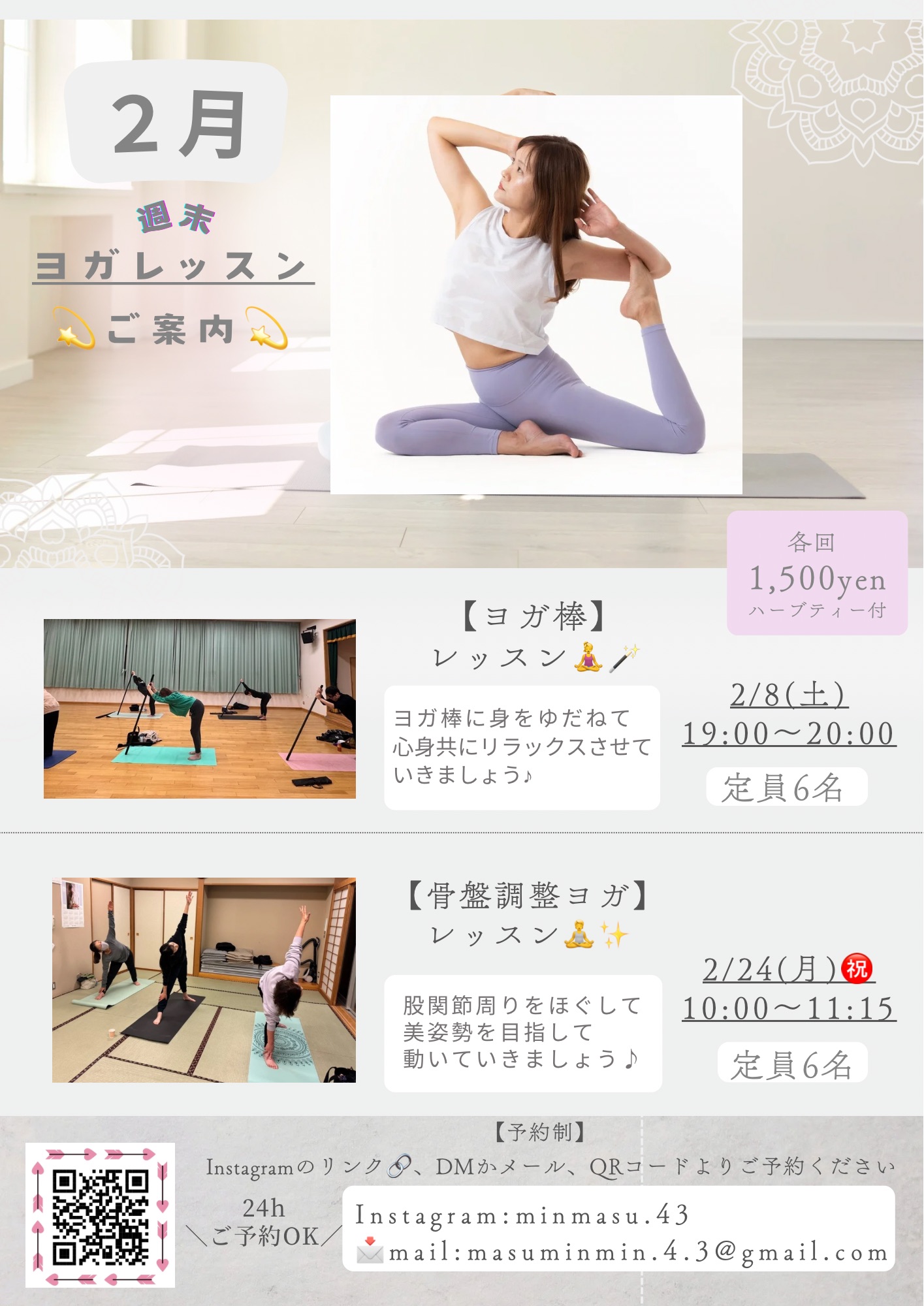 2月の週末に行うヨガレッスンの案内をさせていただきます。