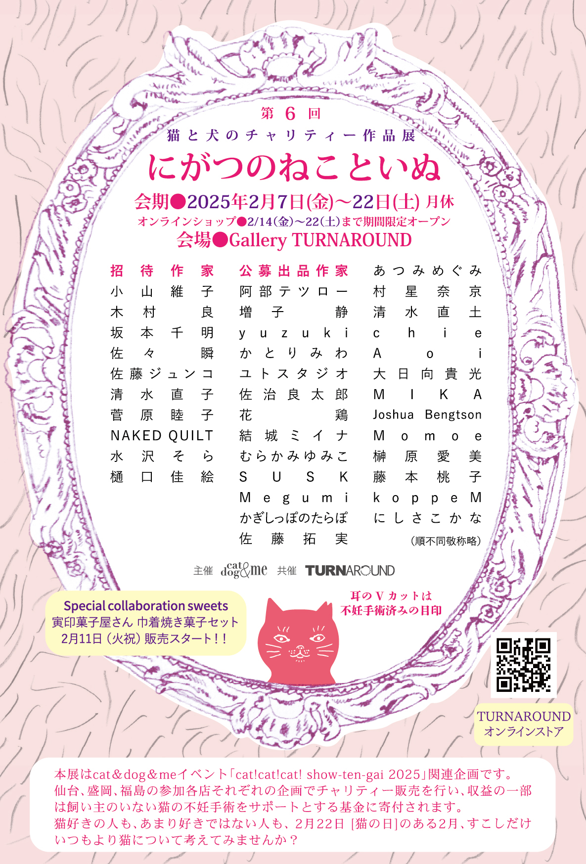 本展は、「2月22日=猫の日」から猫の月として定着しつつある2月に行うcat&dog&me主催の「cat!cat!cat! 2025」企画に賛同したチャリティアート展です。