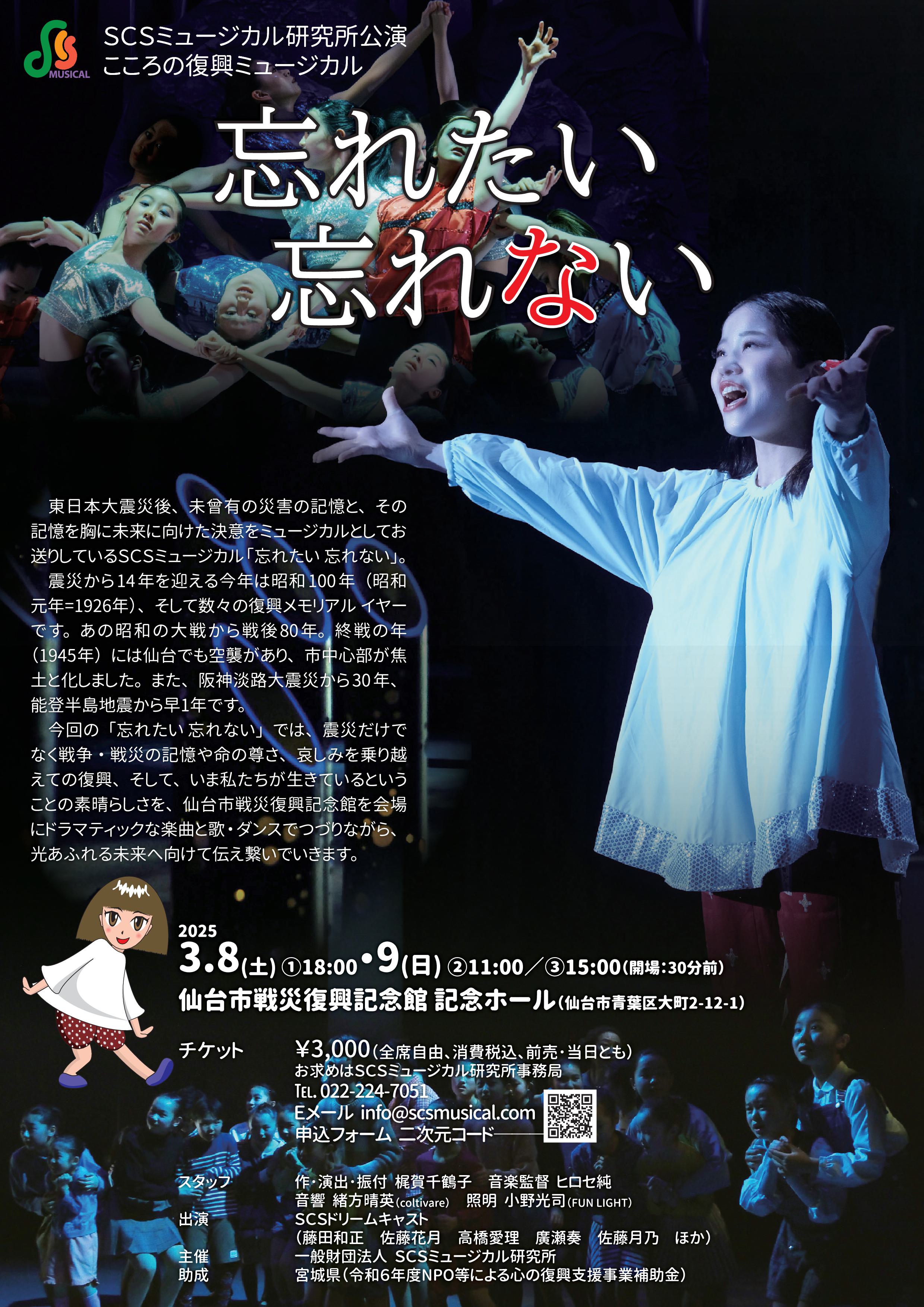 東日本大震災後、未曾有の災害の記憶と、その記憶を胸に未来に向けた決意をミュージカルとしてお送りしているSCSミュージカル「忘れたい 忘れない」。