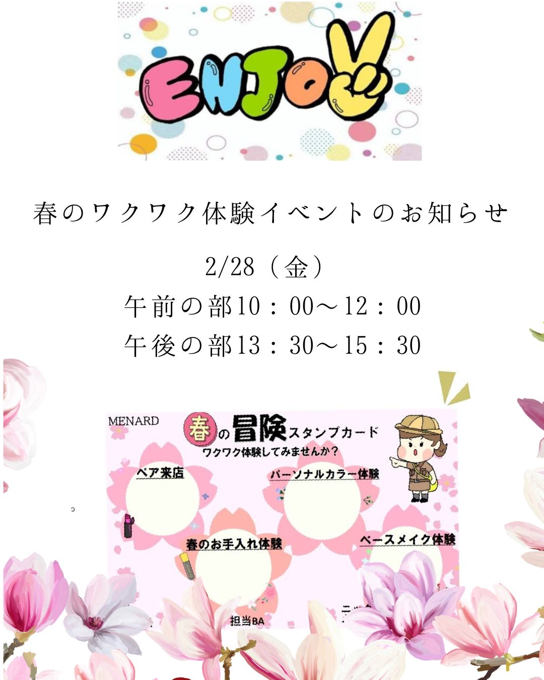 ?春のお手入れや?崩れにくいベースメイク、さらに?パーソナルカラー診断など、春にぴったりなビューティー体験を楽しめます!