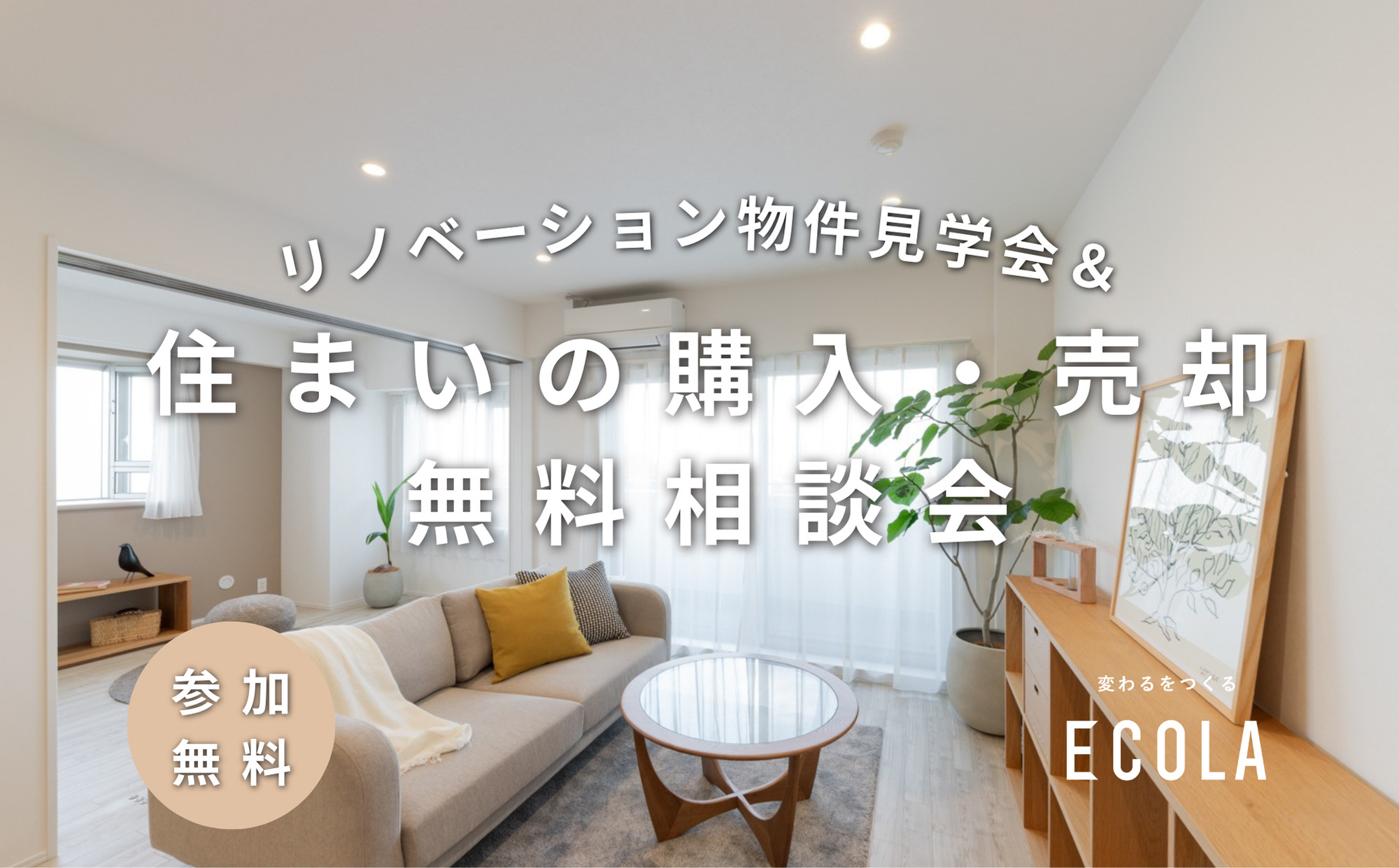 株式会社エコラがリノベーションを手がけたマンションの一室で、リノベーション見学会&個別相談会を開催いたします。