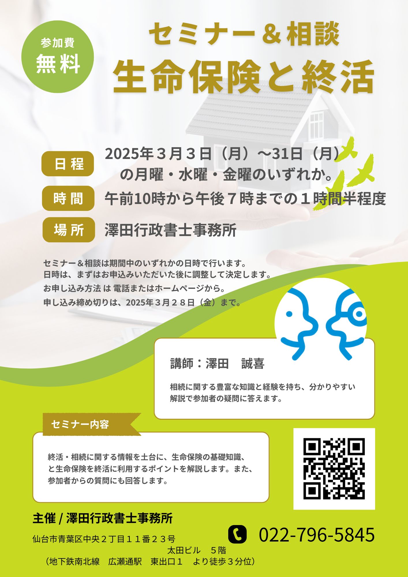 セミナー&相談の日時は、ご相談の上、決定いたします。