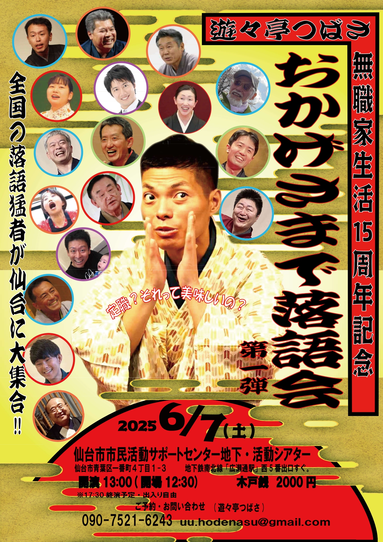 仙台で絶賛活動中の遊々亭つばさの無職家生活15周年落語会。