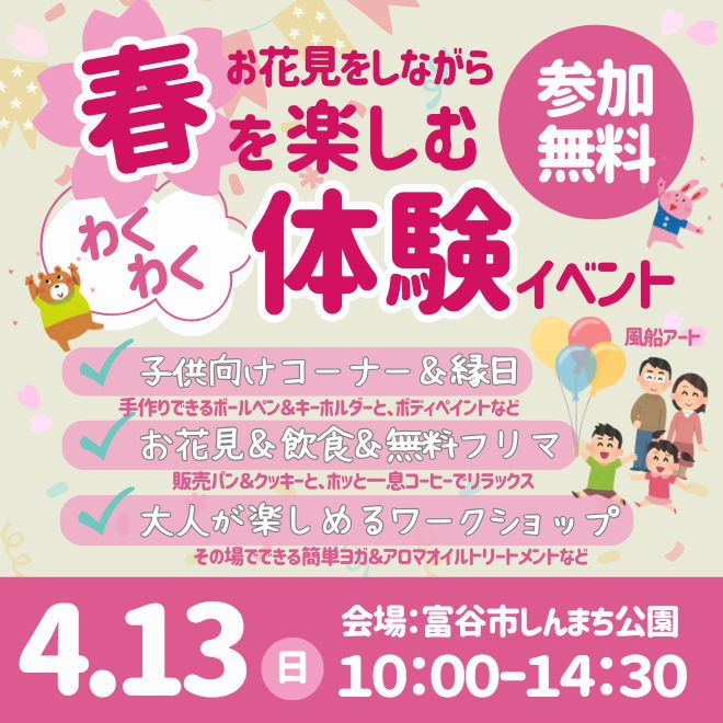 春の訪れを感じながら、親子で楽しく、リラックスできる多彩な体験ブースをご用意しました!