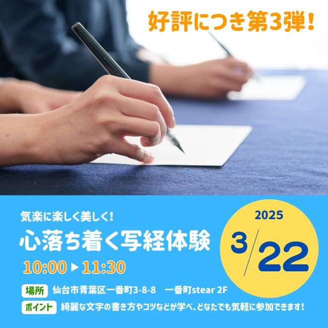 写経体験は、初めての方でも気軽に参加することができ、参加者の方々と楽しく美しい文字を学べるイベントとなっています!