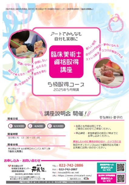 アートを通して地域や人と関わる資格『臨床美術士』になるためのはじめの一歩『5級資格取得コース』を5月にスタートする前に、講座説明会を開催します。