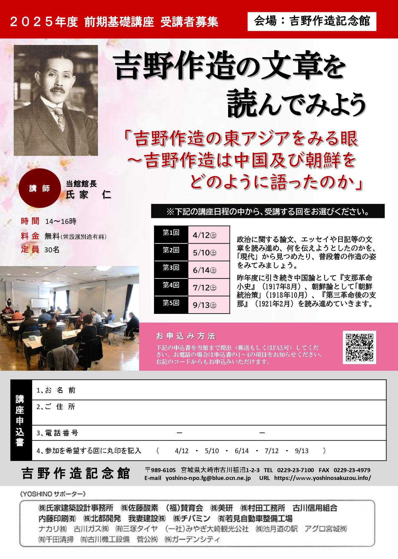 前期基礎講座「吉野作造の文章を読んでみよう」(全5回)