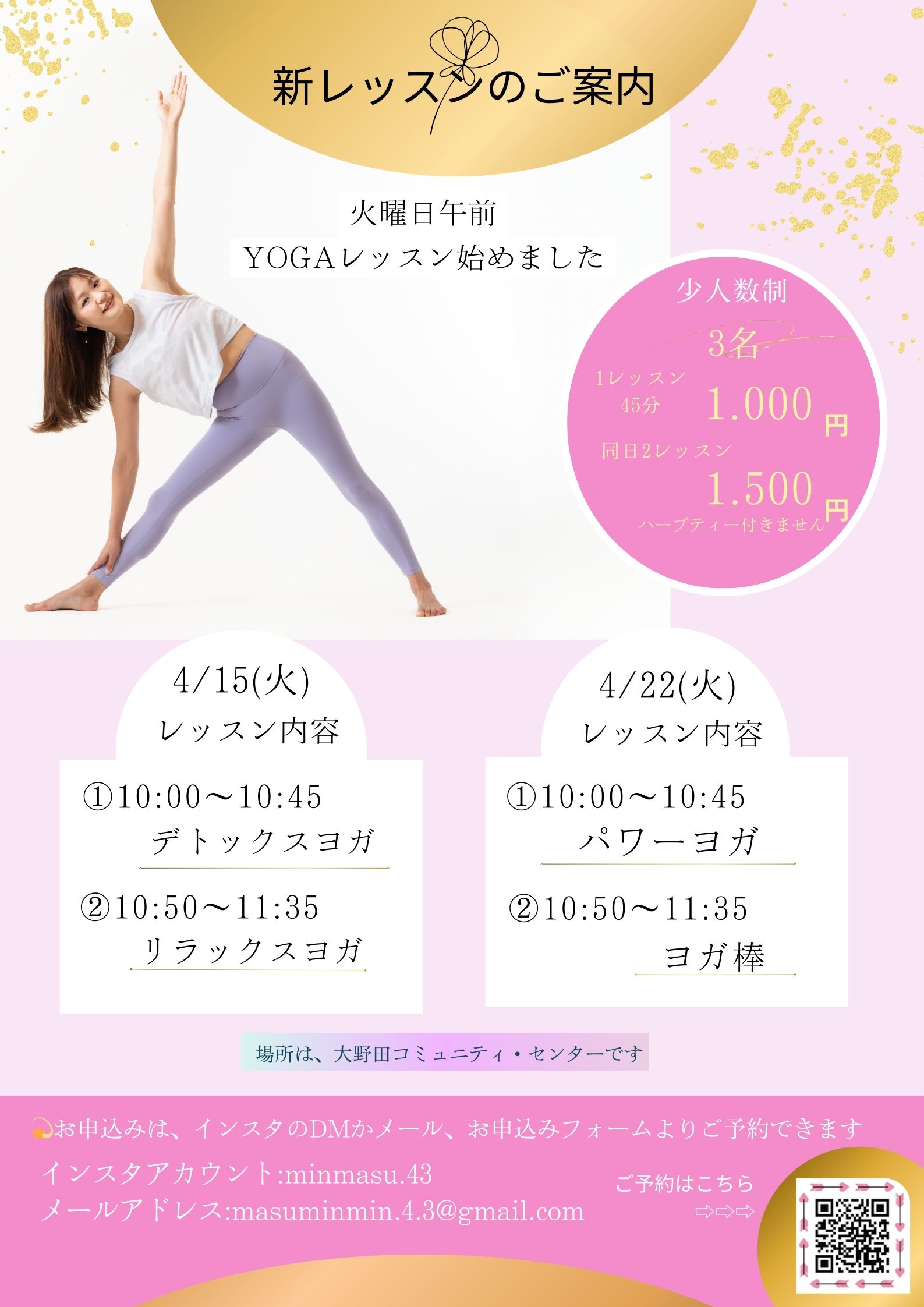 ※ヨガマットのお貸出しを行っていますので、事前にご連絡をお願いします。