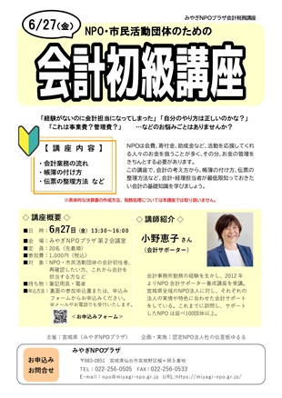 ◆対 象: NPO・市民活動団体の会計初任者、これから会計を担当される方、再確認したい方など