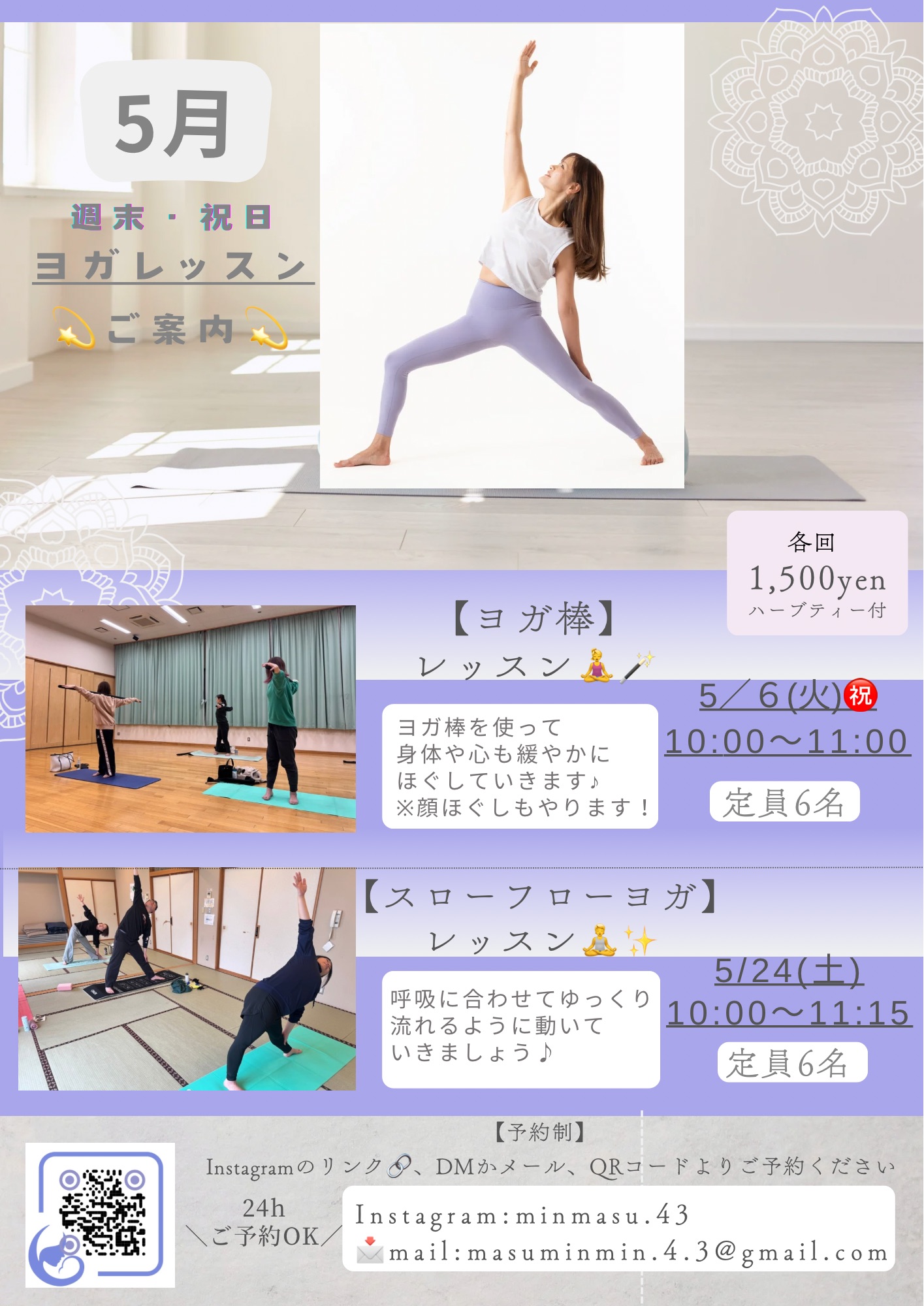 【5月週末・祝日ヨガレッスンのご案内】