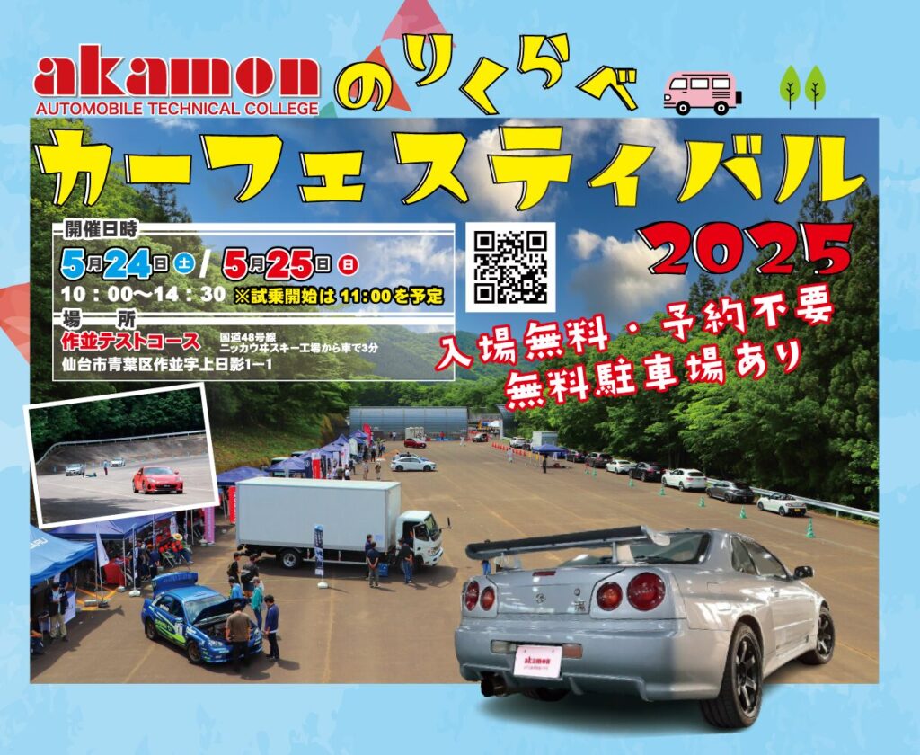 赤門自動車整備大学校が主催する、年に1度のカーフェスティバル!学校専用テストコースにて自動車販売会社、各企業様のご協力のもと、数々の車に試乗・同乗できる2日間です!