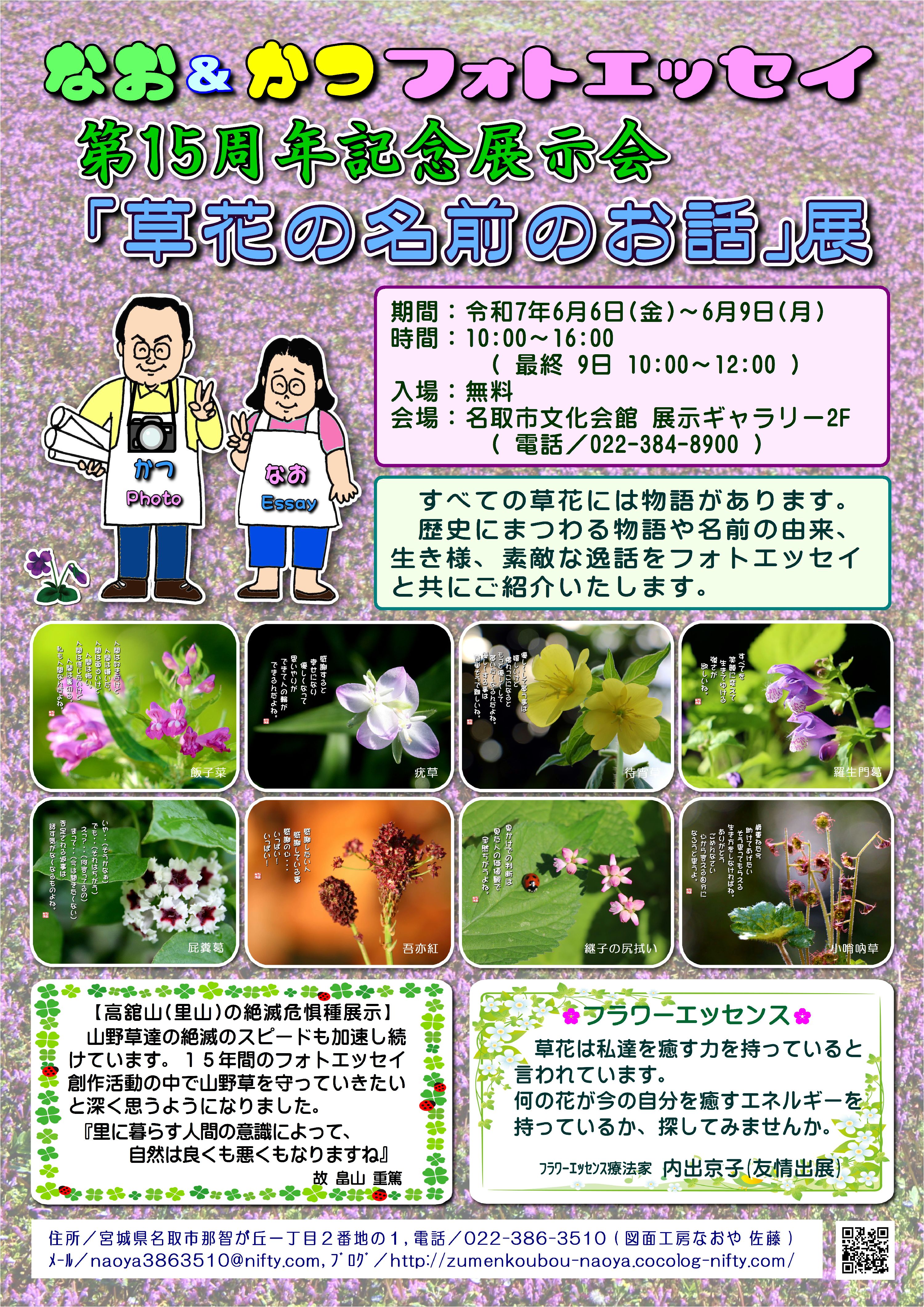 ?企 画 名 なおかつフォトエッセイ 第3回名取市文化会館個展「草花の名前のおはなし展」
