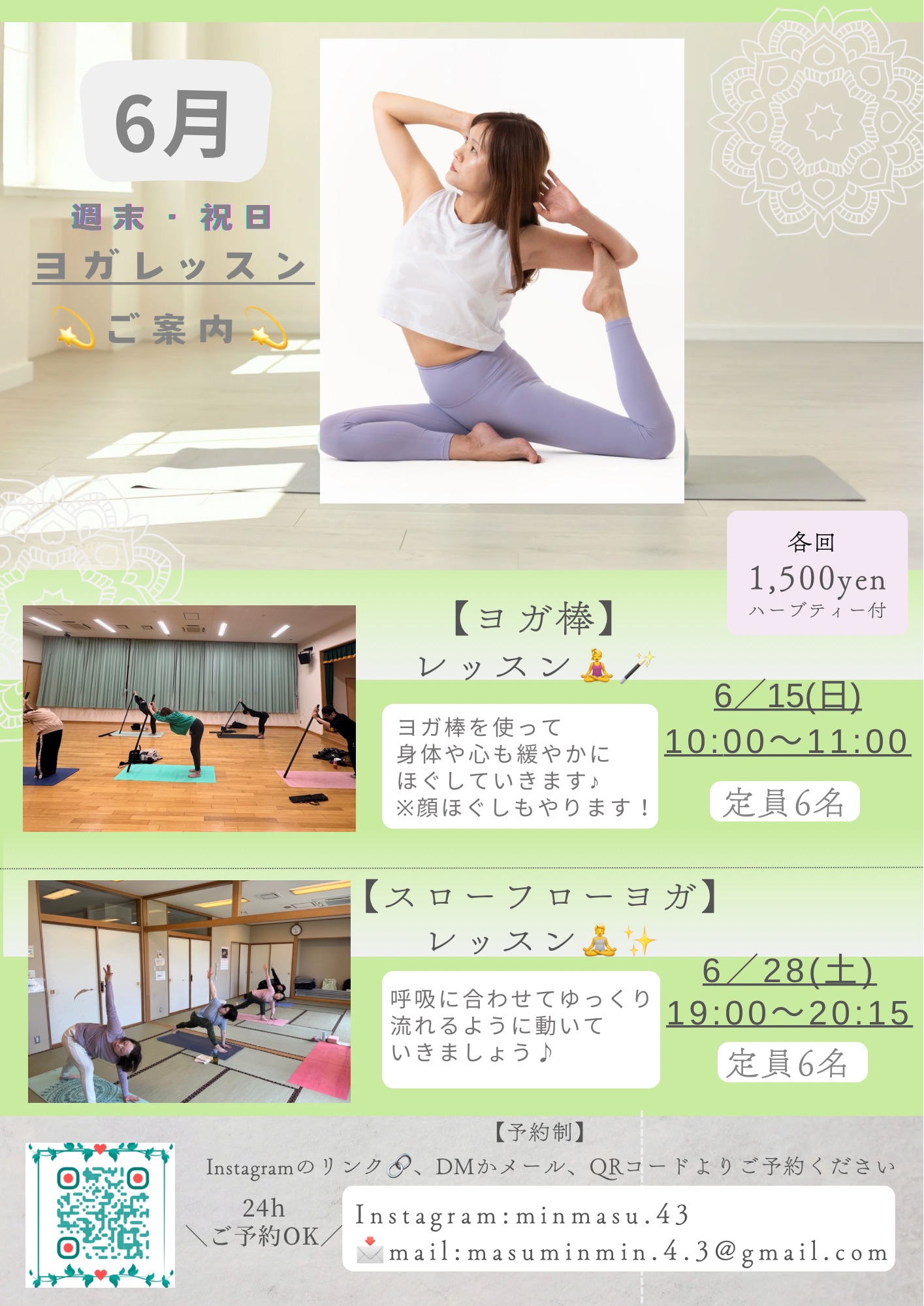 ※ヨガマットのお貸出しを行っていますので、事前に連絡をお願いします。