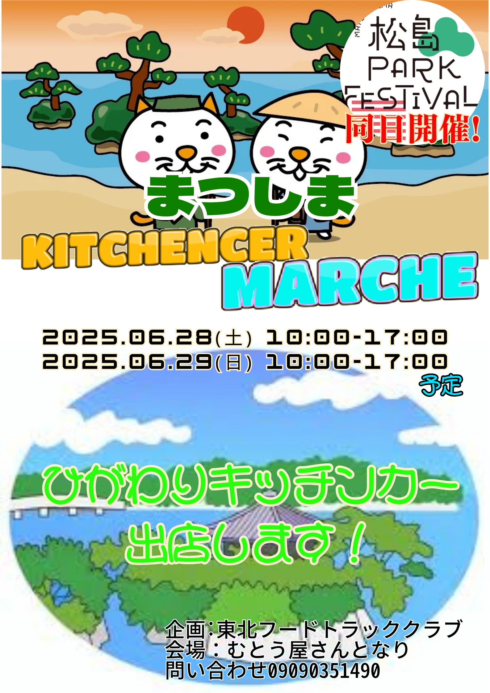 このたび、日本三景松島での音楽の祭典「松島パークフェスティバル」開催にあわせ、古くからお付き合いのある住民さんのご協力のもと、キッチンカーマルシェを開催することになりました。