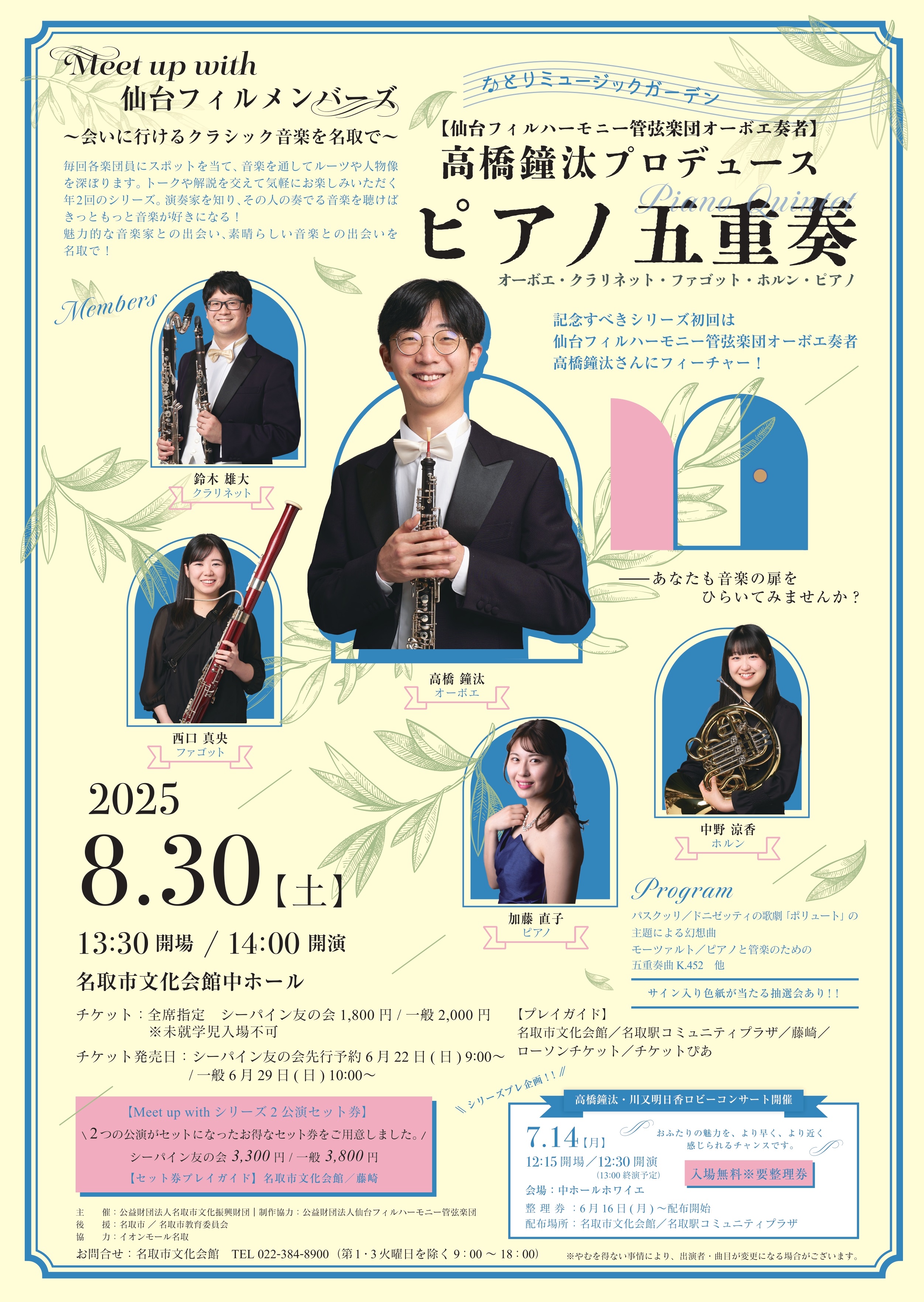 なとりミュージックガーデン Meet up with 仙台フィルメンバーズ 高橋鐘汰プロデュース ピアノ五重奏