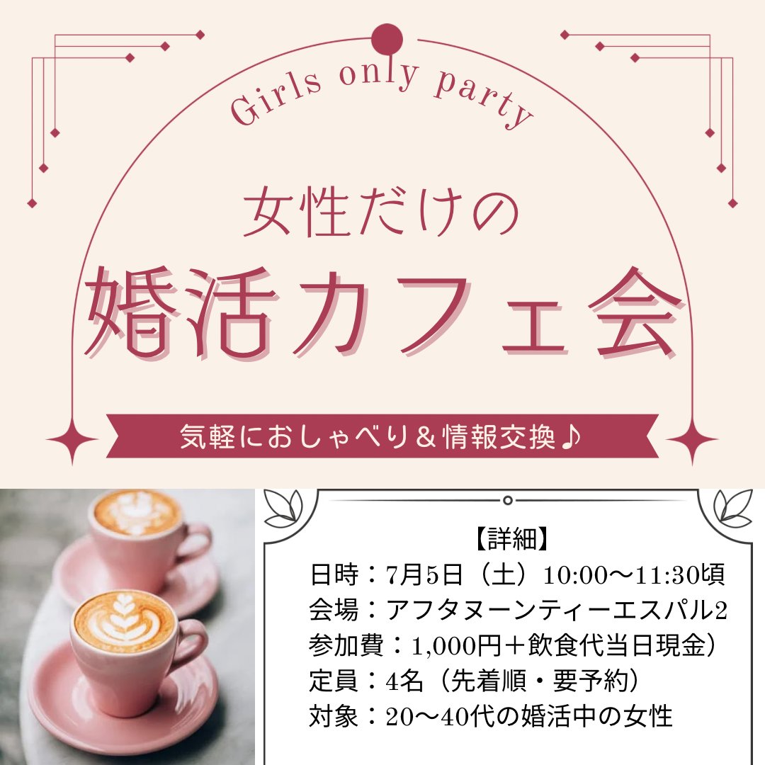 この朝カフェ会は、婚活中の女性や「これから始めようかな」と思っている方が、気軽に集まっておしゃべりできる少人数の会です。
