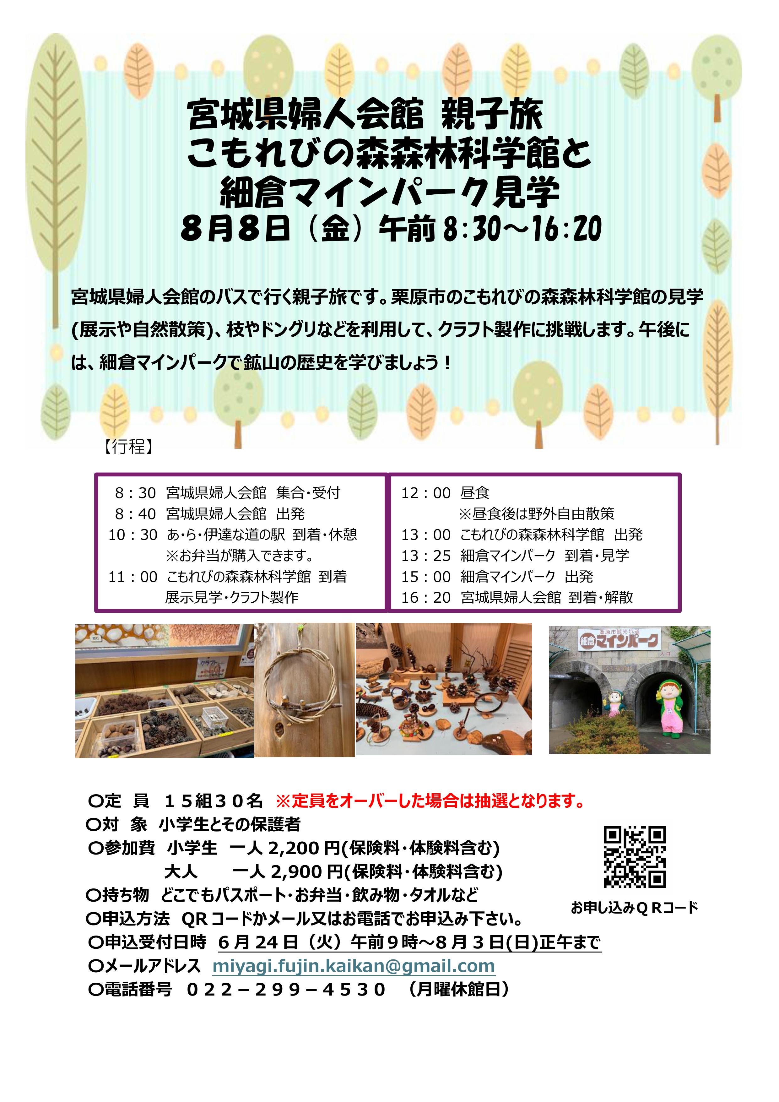 宮城県婦人会館 親子旅「こもれびの森森林科学館と細倉マインパーク見学」