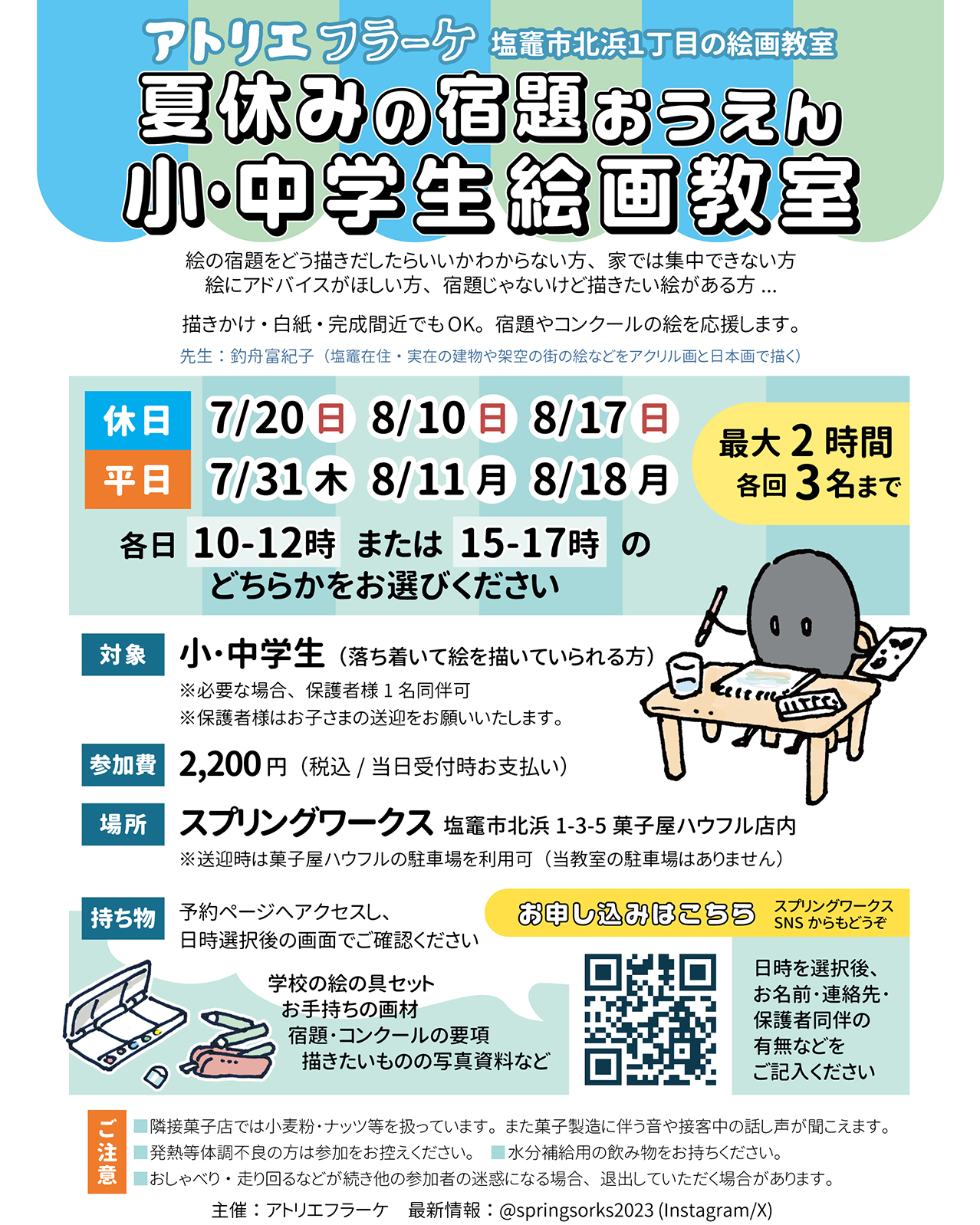 【対象】 小中学生(落ち着いて絵を描いていられる方)