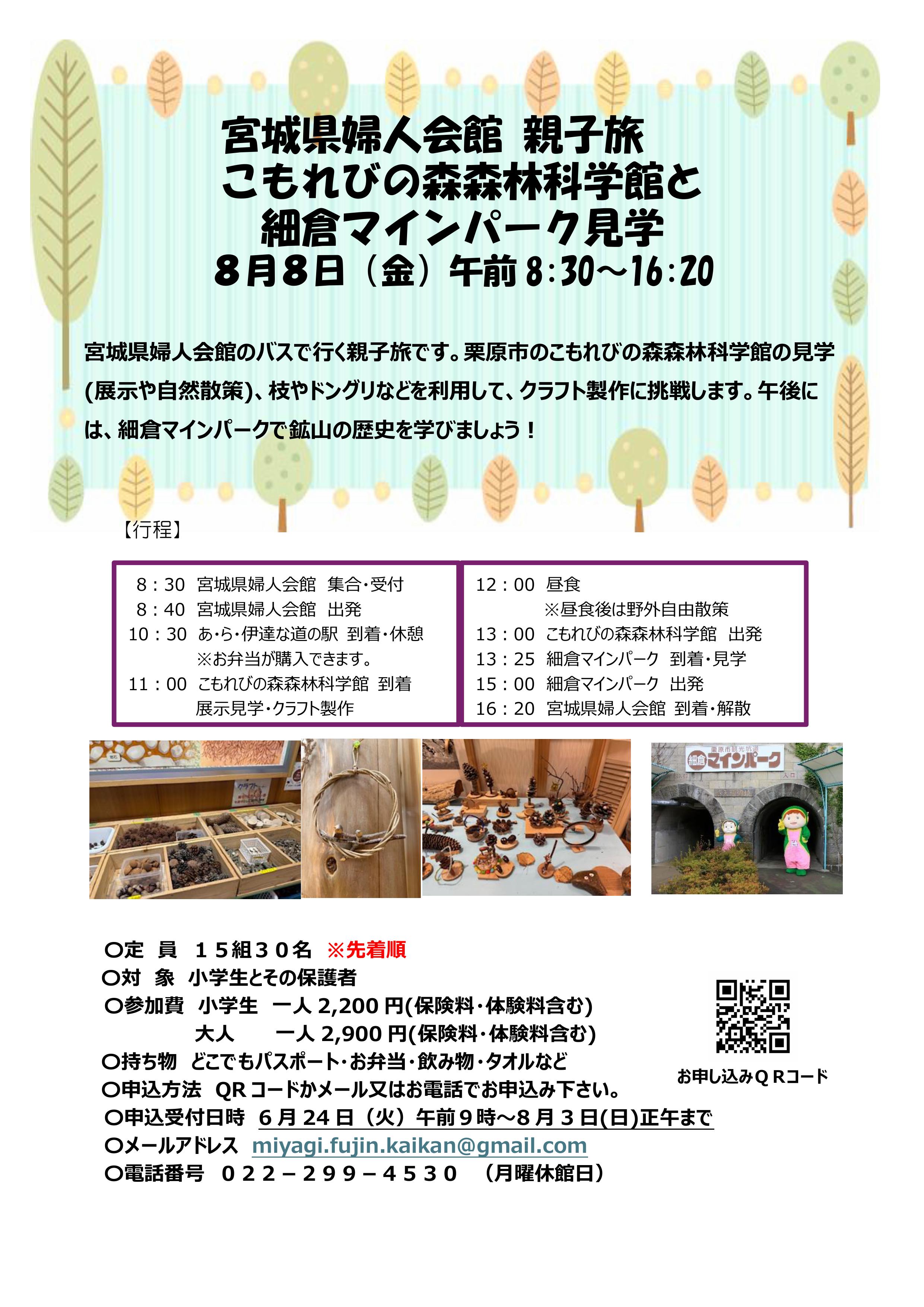 宮城県婦人会館親子旅「こもれびの森森林科学館と細倉マインパーク見学」