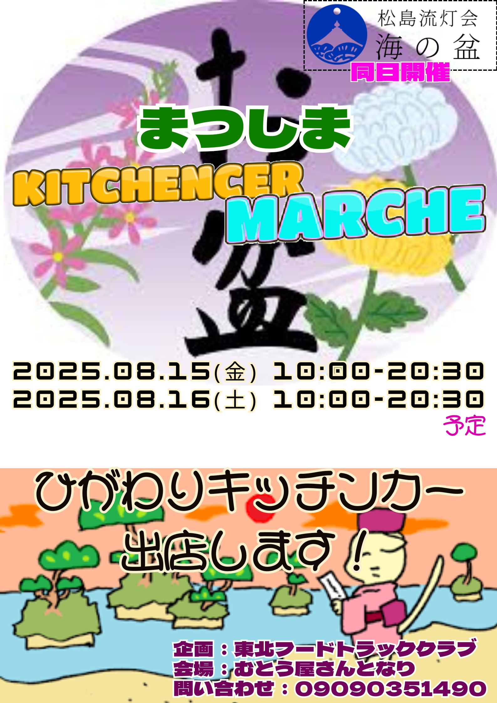 今年も、日本三景松島でのお盆の行事「松島海の盆」開催にあわせ、古くからお付き合いのある住民さんのご協力のもと、キッチンカーマルシェを開催することになりました。