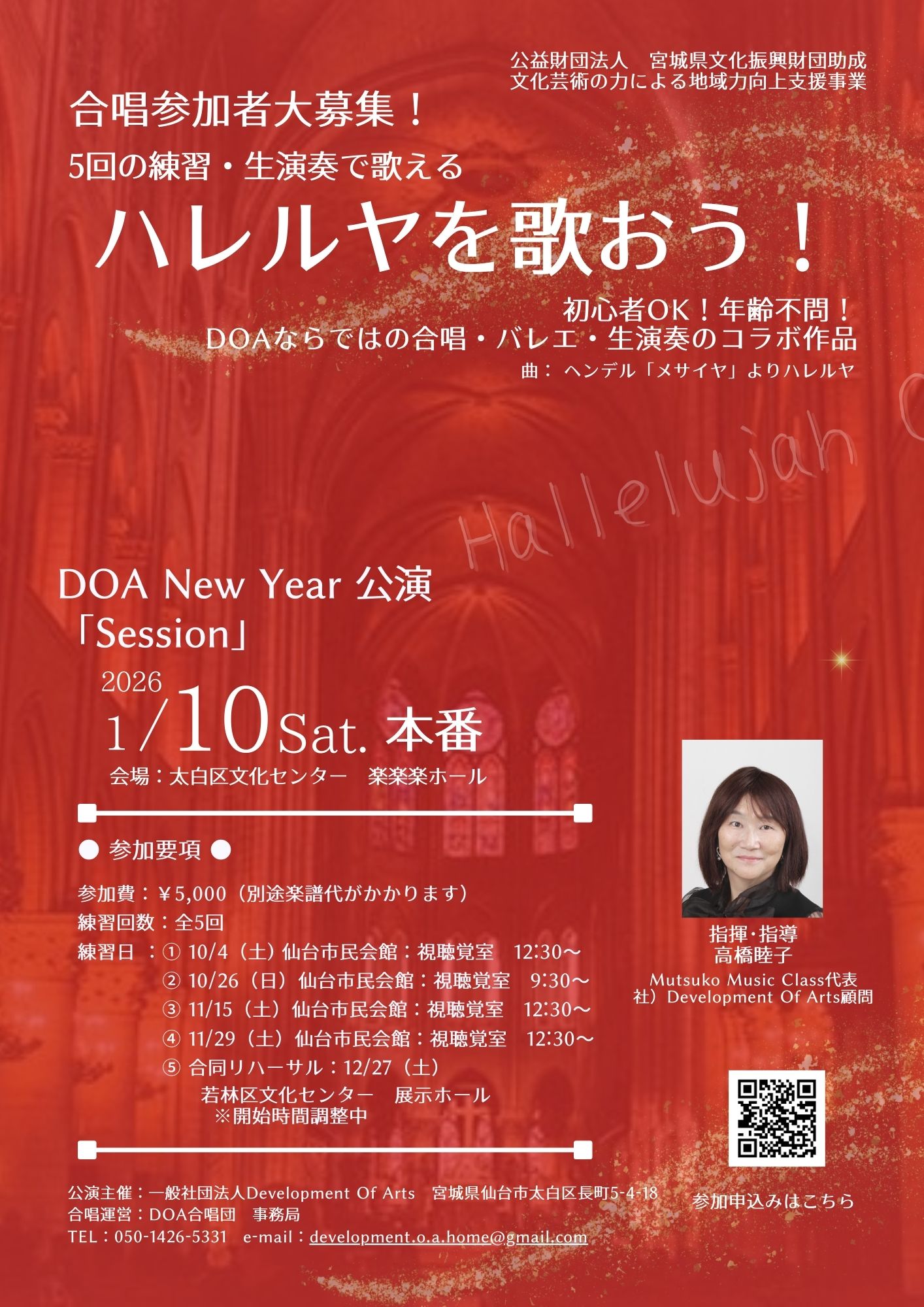 DOA公演「Session」で歌唱する「ハレルヤ」の合唱参加者を募集しています。