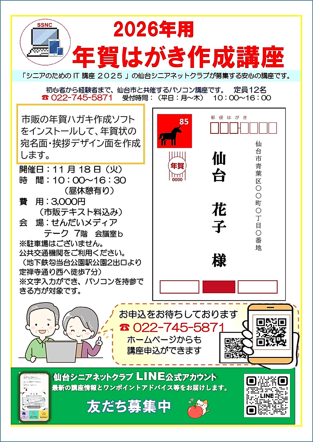 市販の年賀ハガキ作成ソフトをインストールし、年賀状の宛名面・挨拶デザイン面を作成します。