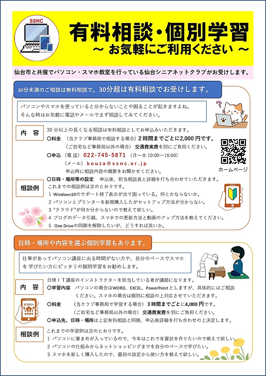 当事務局で、またはご自宅など事務局以外の場所などもご相談下さい。