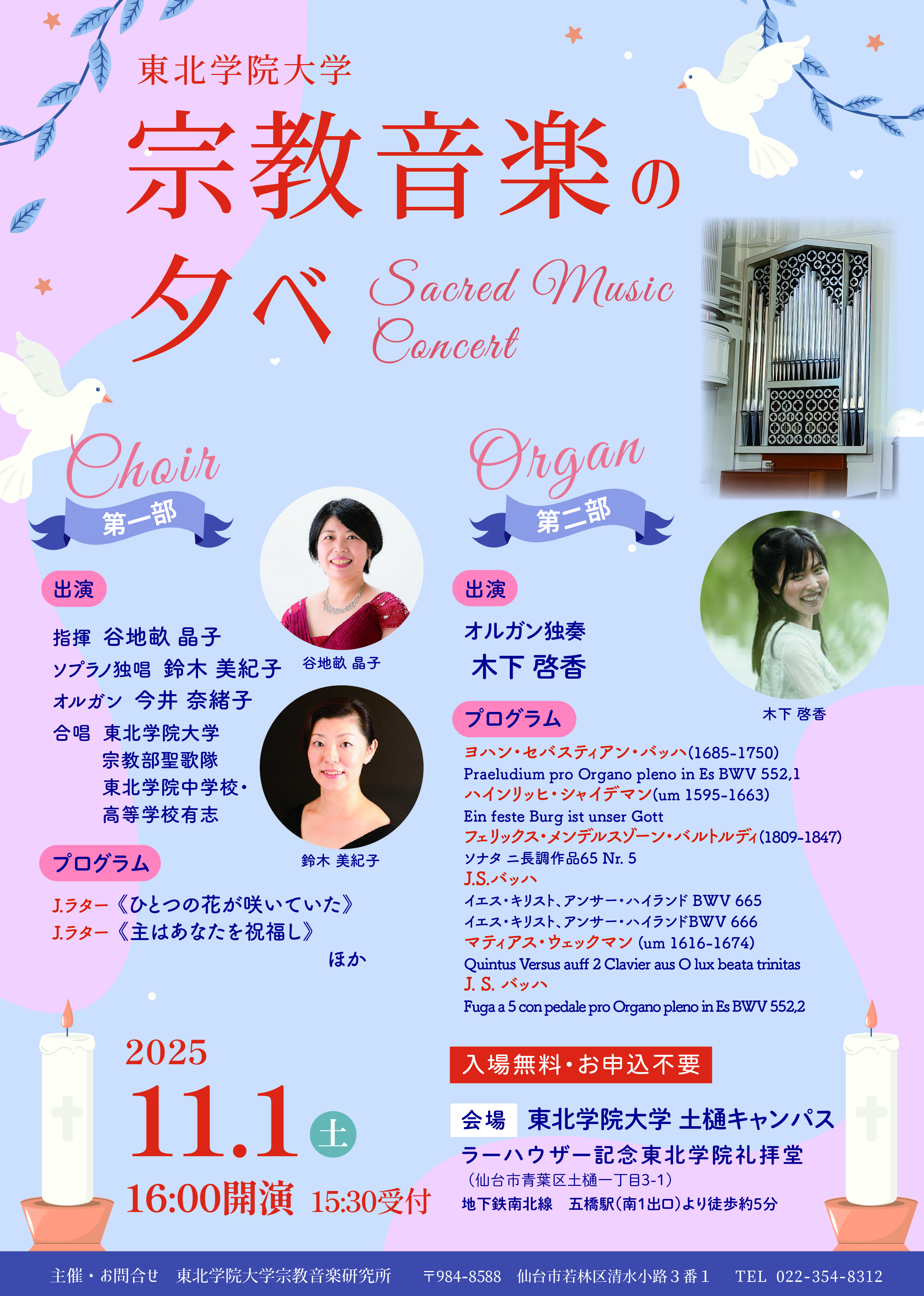 問合せ先 東北学院大学 宗教音楽研究所 TEL022-354-8312
