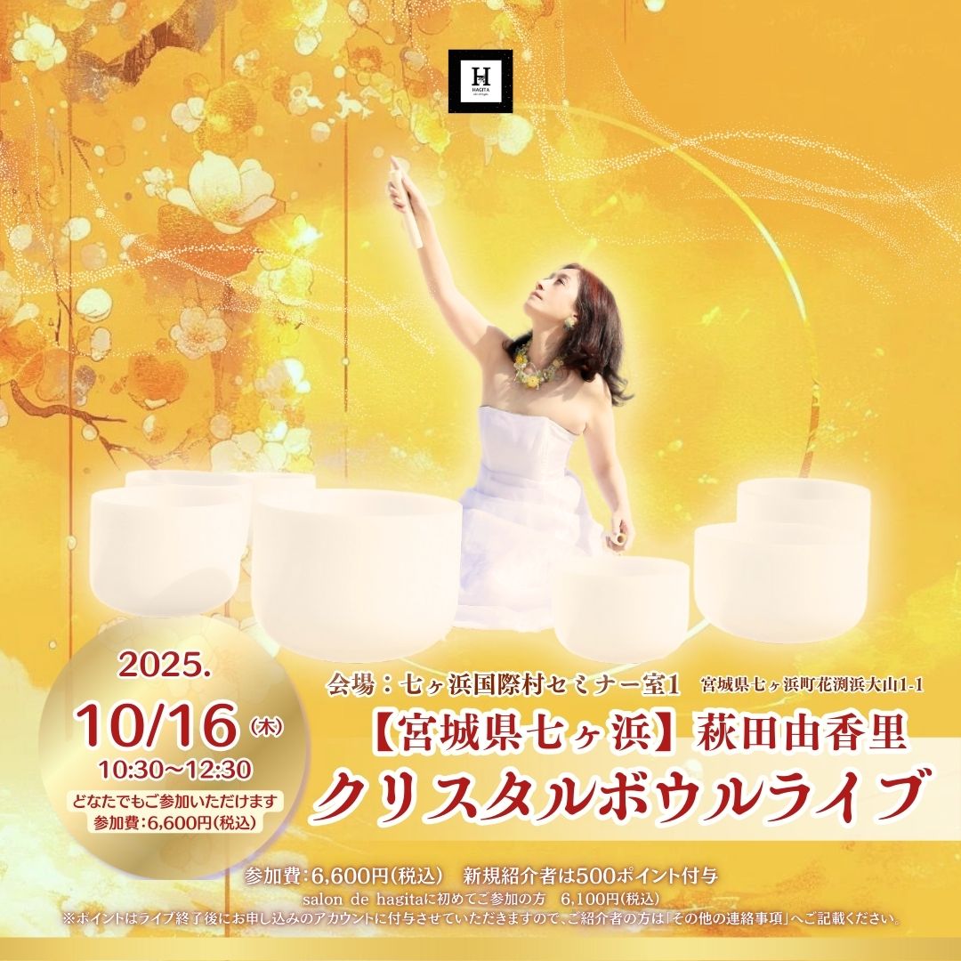 10/16(木)【宮城七ヶ浜】萩田由香里クリスタルボウルライブ