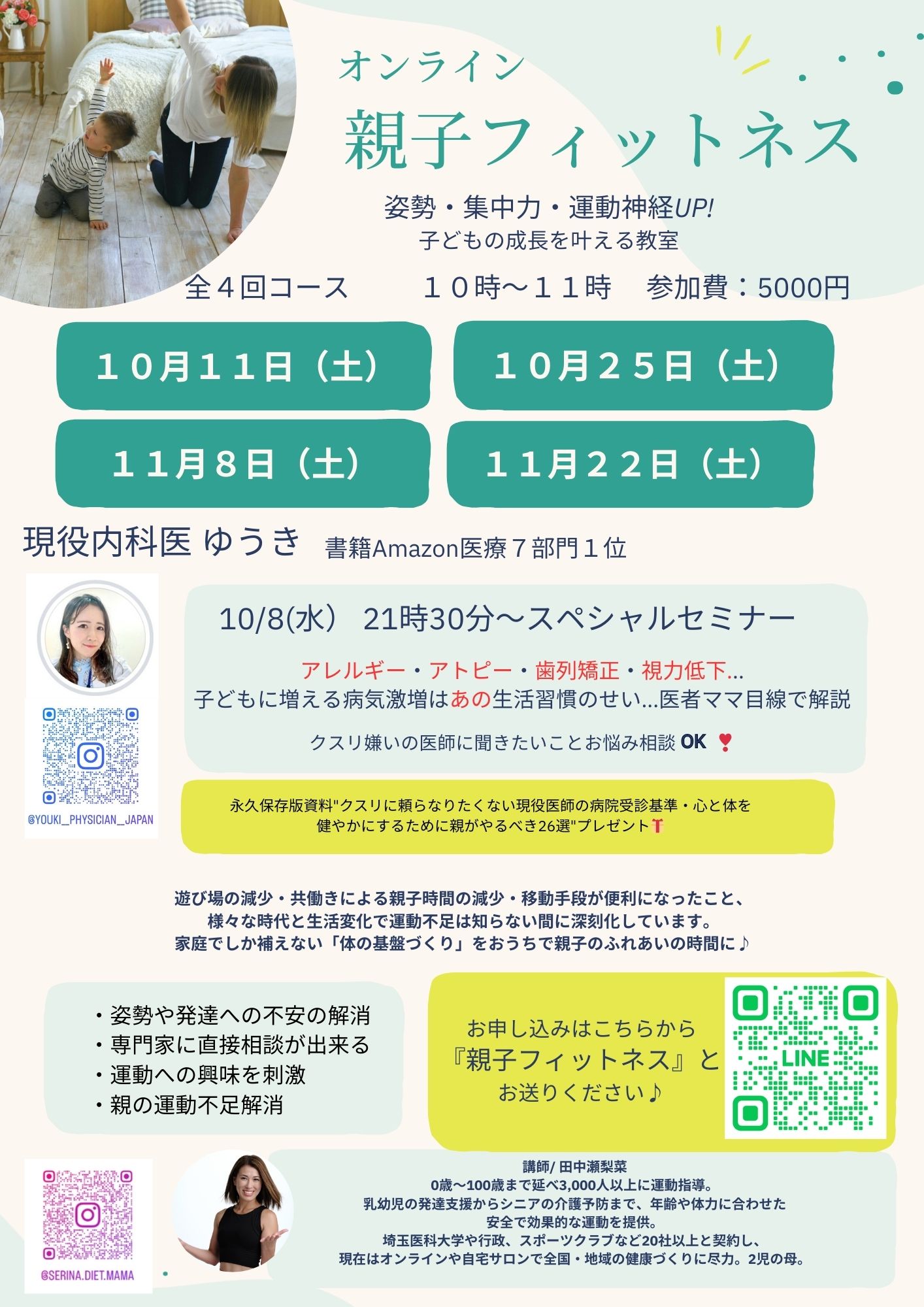 運動嫌いになる前に、親子で楽しく体を動かしながら、未来の健康と学びやすい体を一緒につくりませんか?