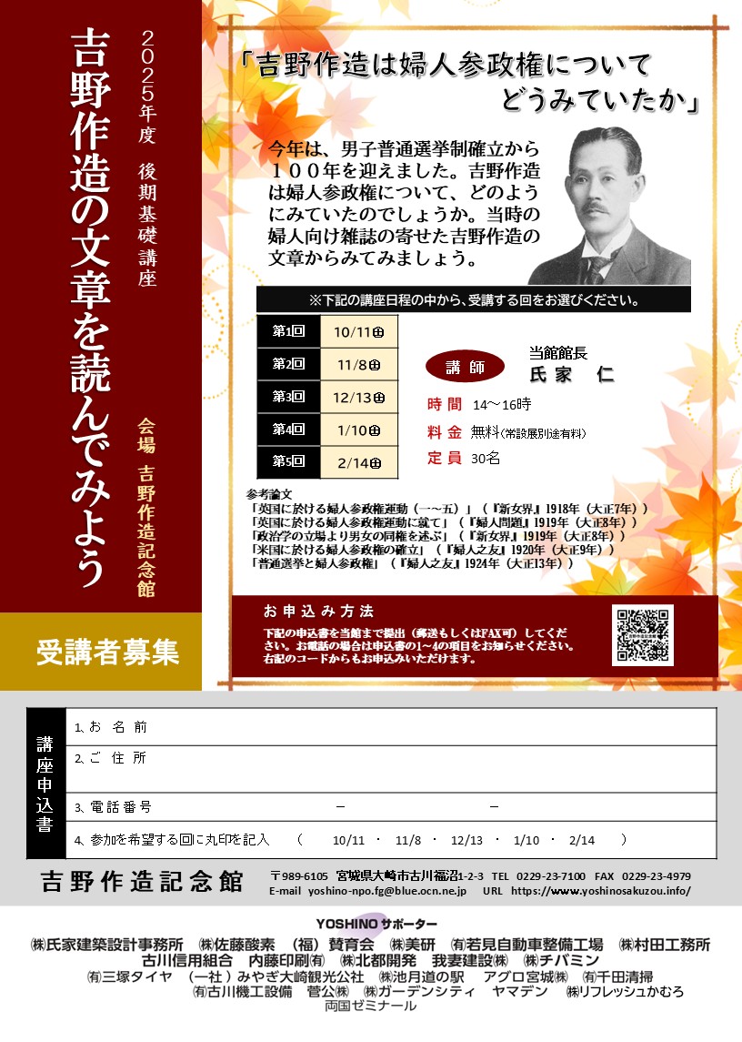 後期基礎講座「吉野作造の文章を読んでみよう」全5回