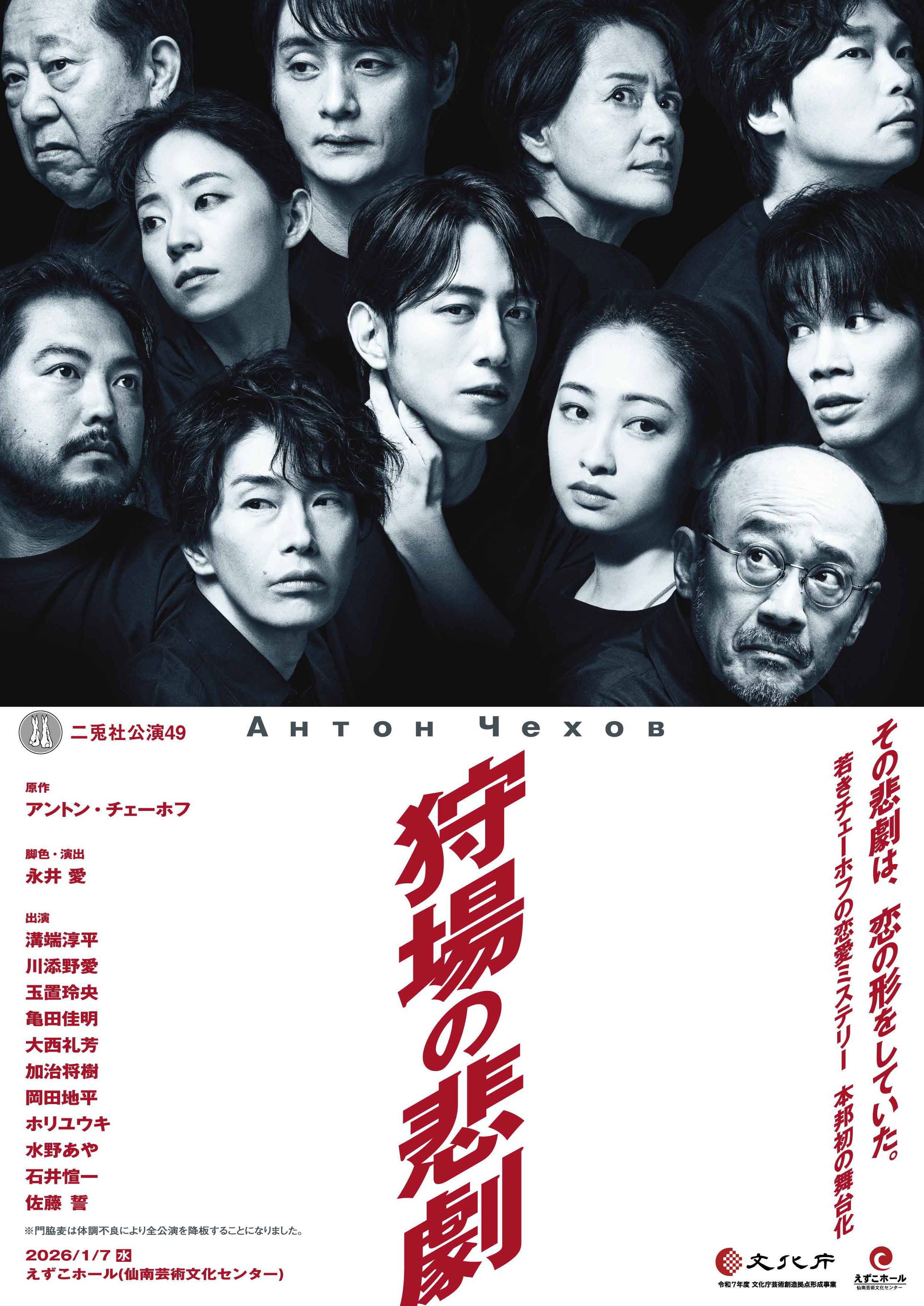 二兎社公演49『狩場の悲劇』に出演を予定しておりました門脇麦さんが、