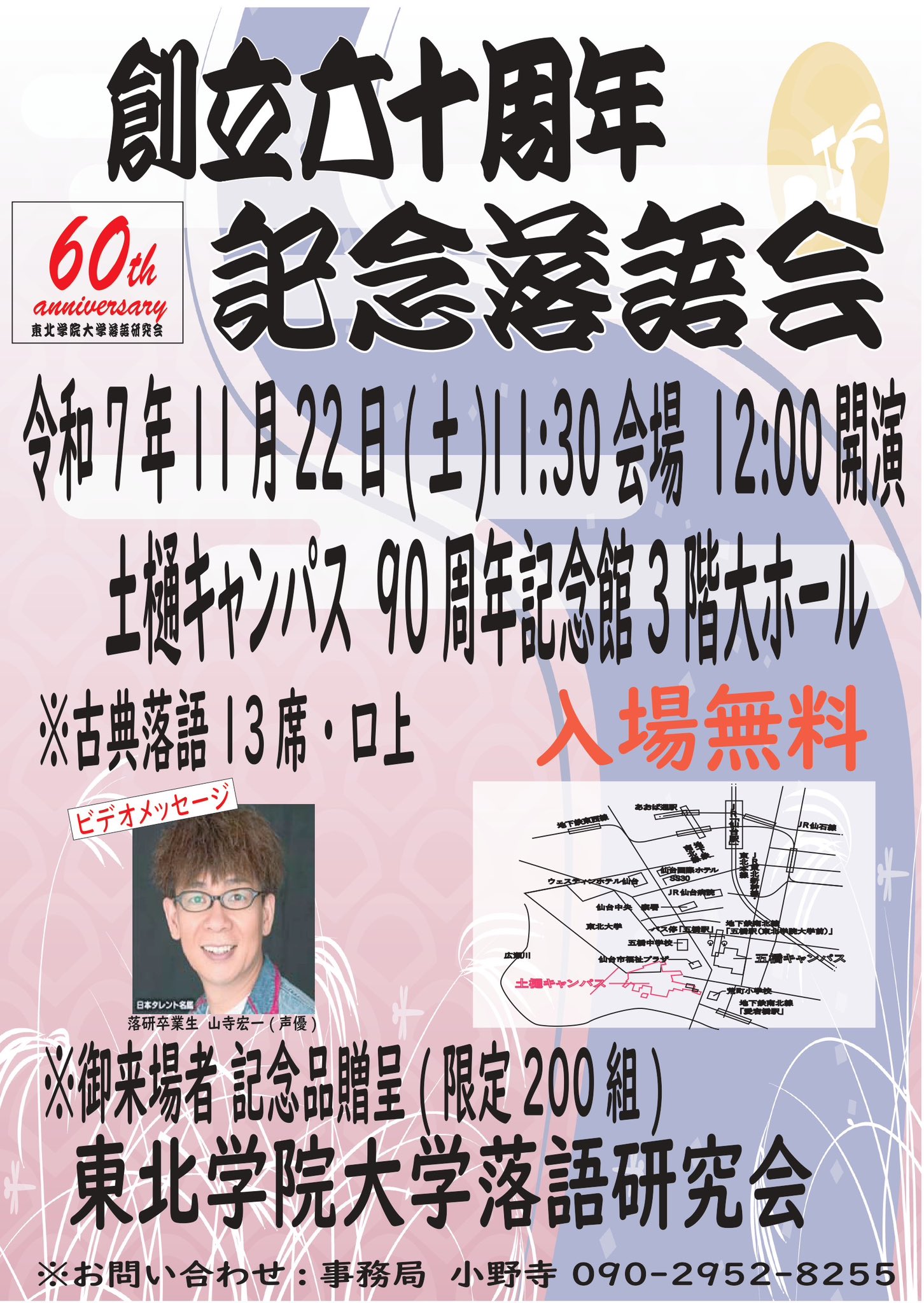 今年で創立60周年を迎える東北学院大学落語研究会の記念落語会です。