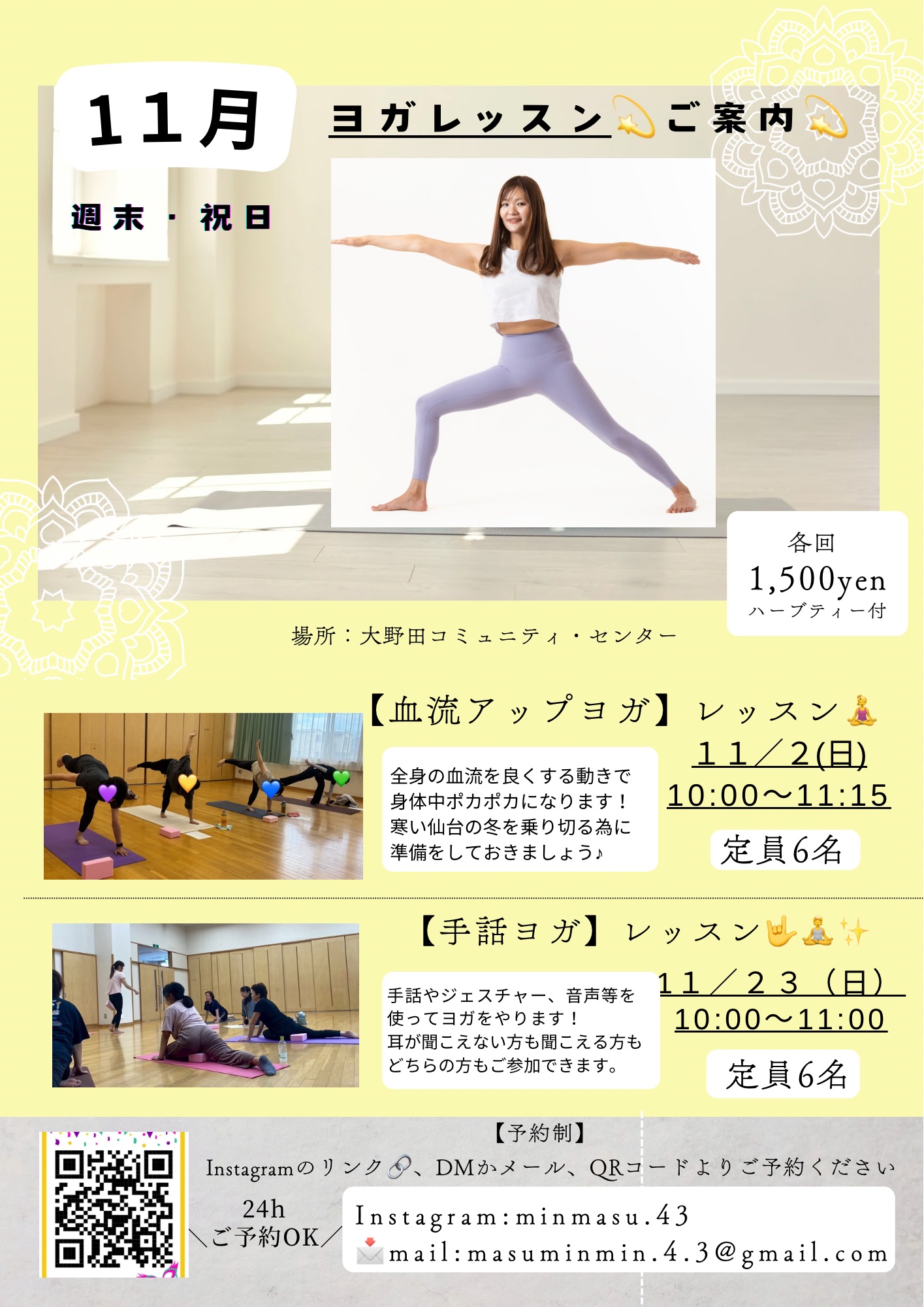 【11月週末 ヨガレッスンのご案内】