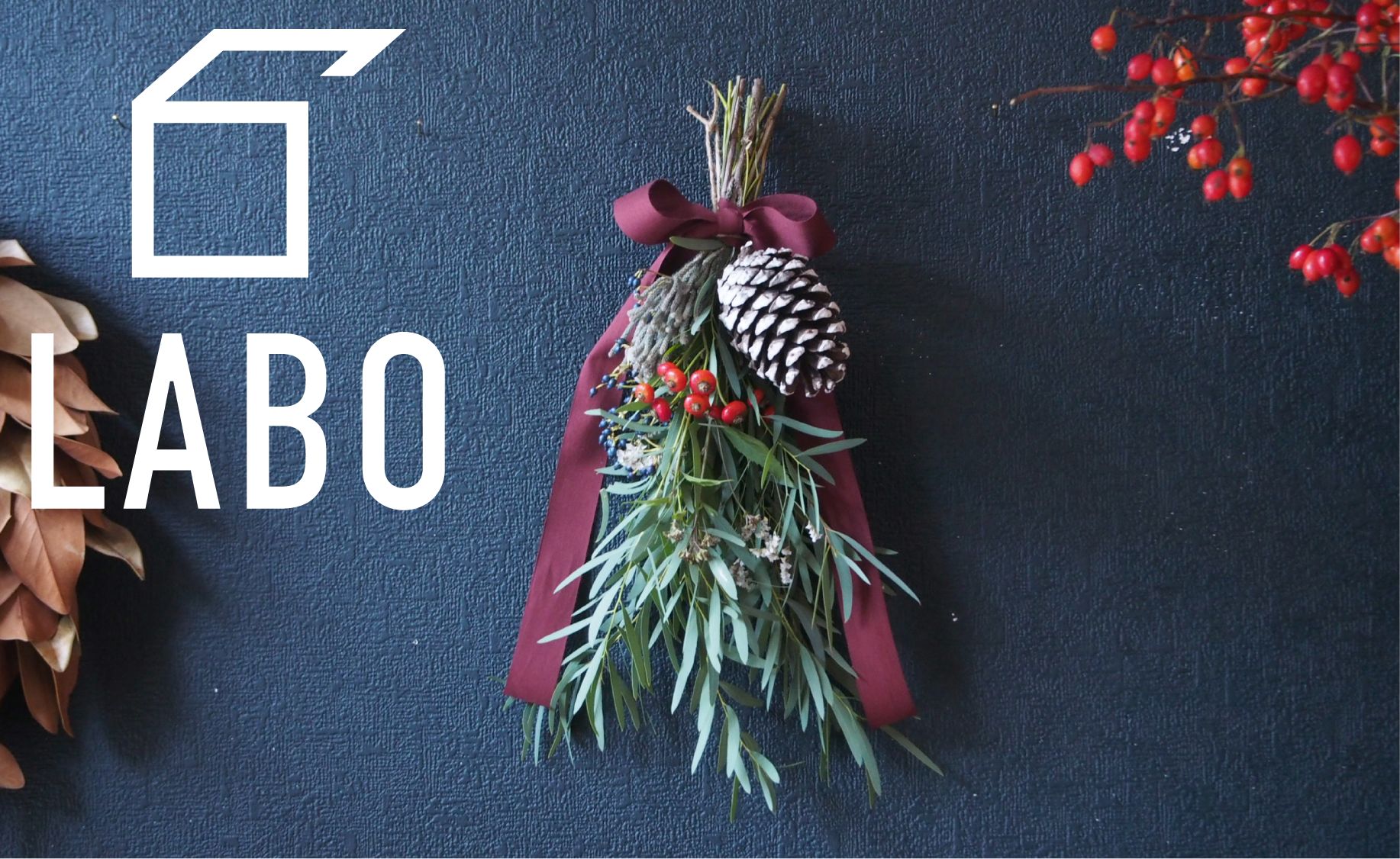 針葉樹や木の実を束ねて、自分だけのクリスマススワッグを手作りしませんか?
