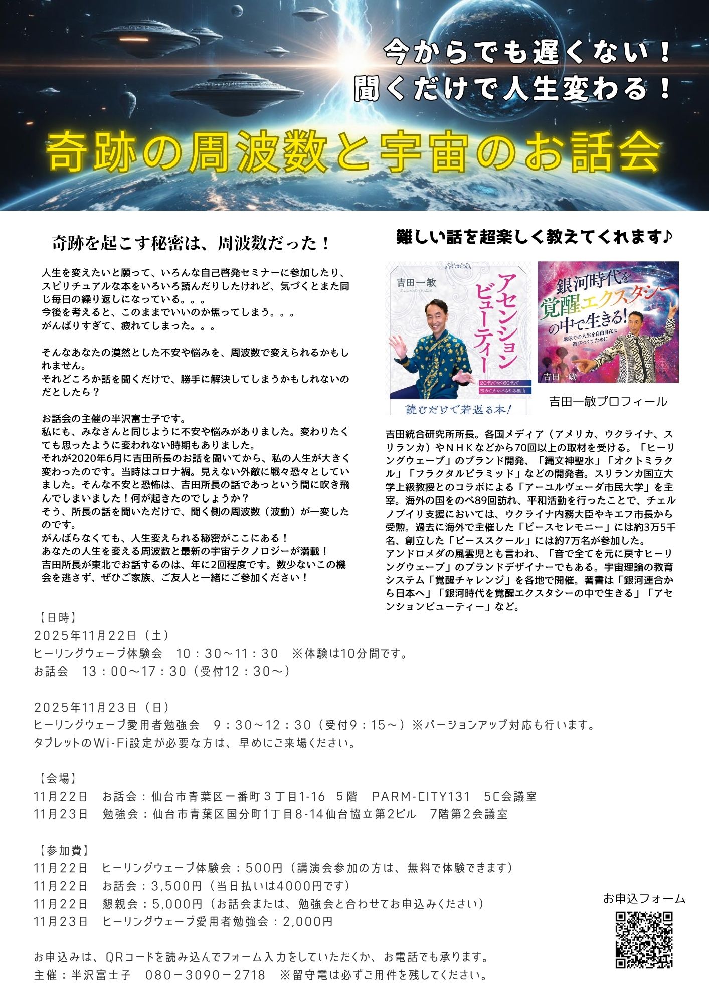 だからこそ、みなさんに参加してほしい「奇跡の周波数と宇宙のお話会」を企画しています。