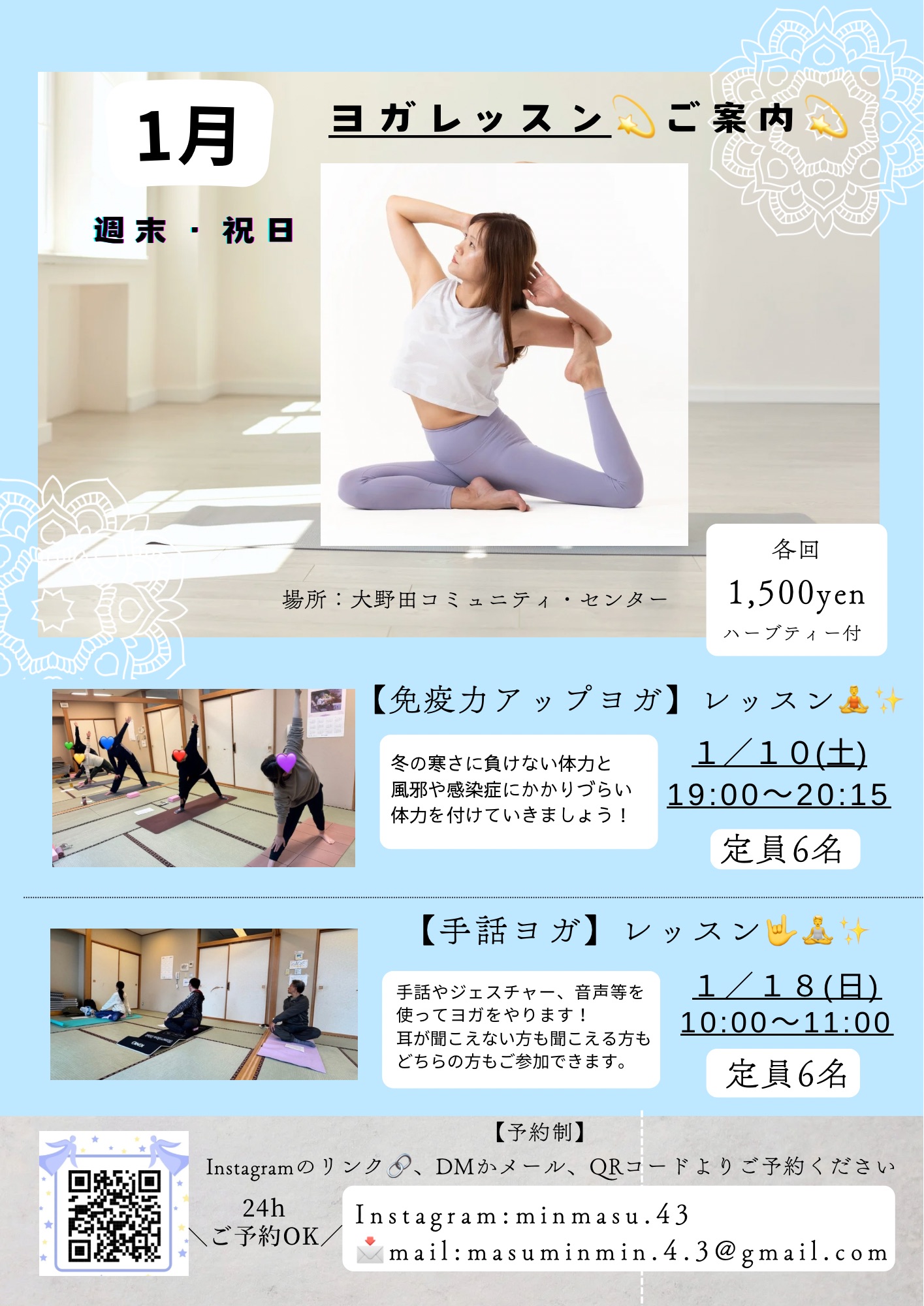 【1月週末・祝日ヨガレッスンのご案内】
