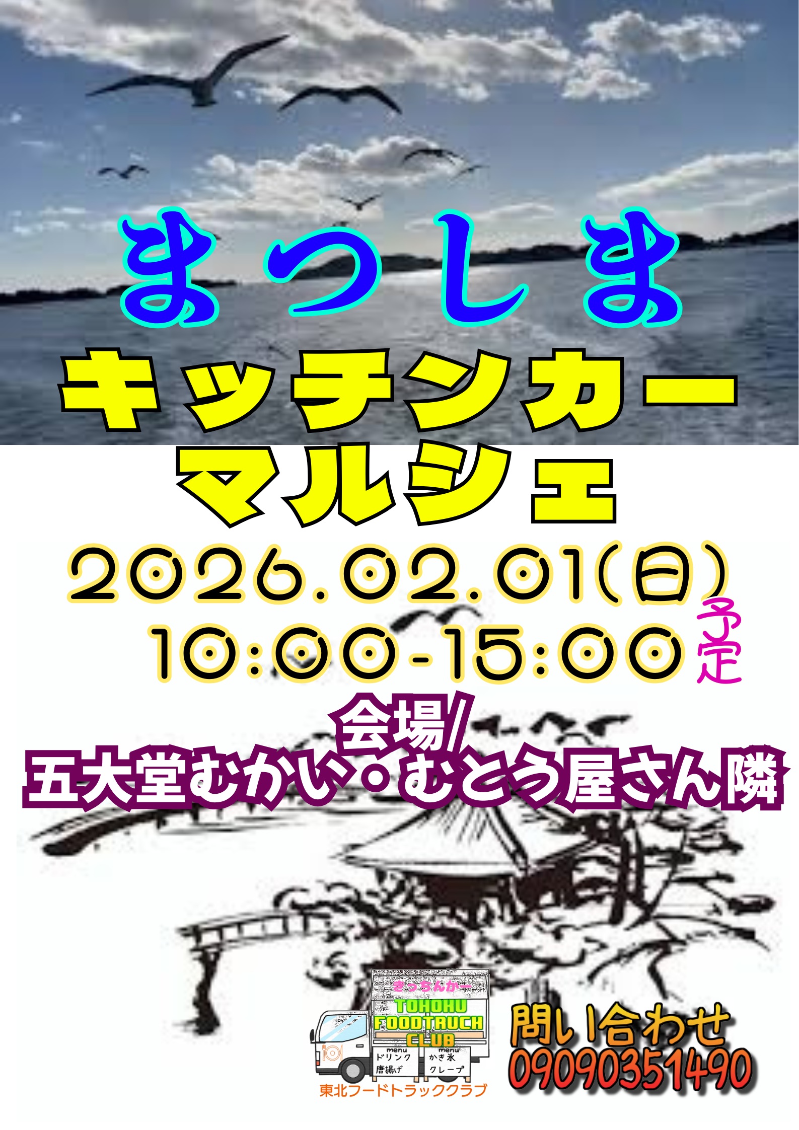 日本三景松島での行事「松島かきまつり」開催にあわせ、古くからお付き合いのある住民さんのご協力のもと、キッチンカーマルシェを開催することになりました。