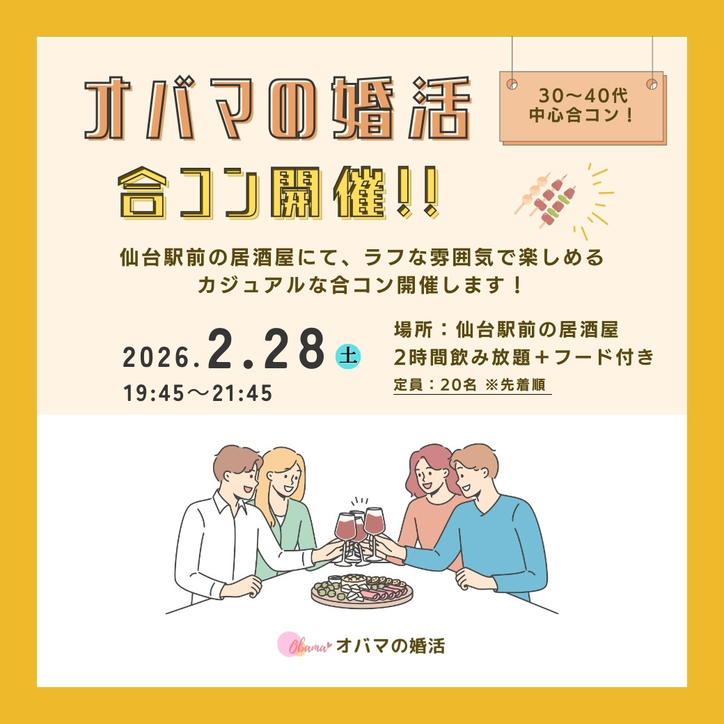 【30〜40代中心合コン参加者募集中!】★2/28(土)仙台にて居酒屋合コン開催★