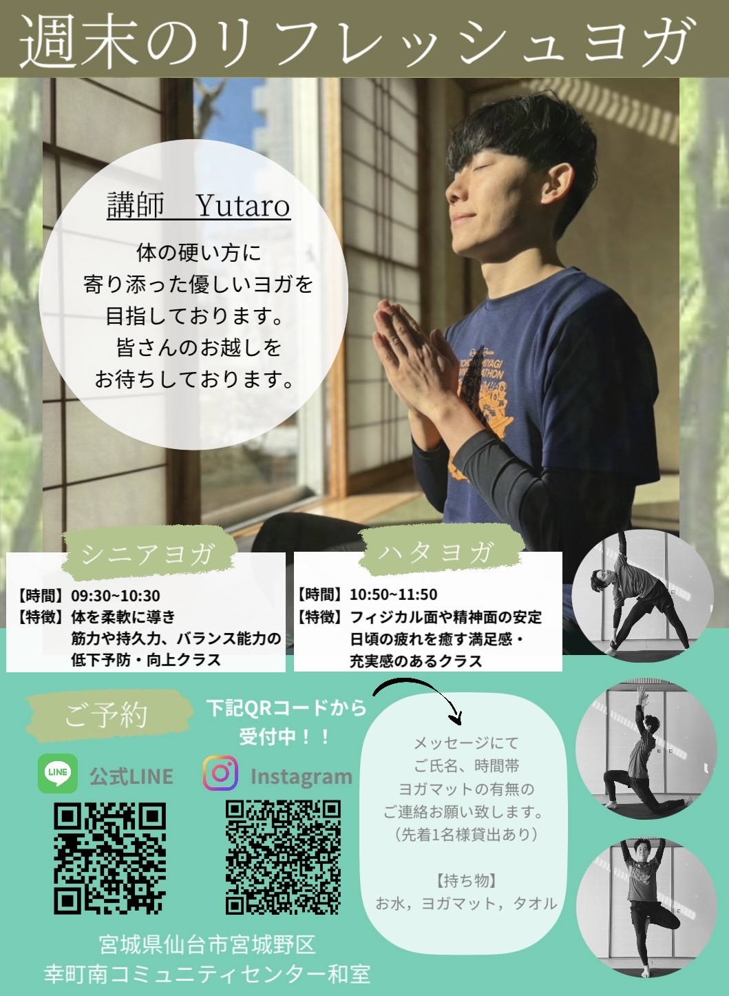 皆さんとヨガを出来ることを楽しみにしています。