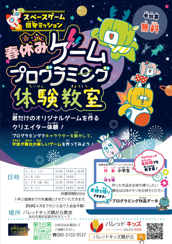 プログラミングでキャラクターを動かして、宇宙が舞台の楽しいゲームを作ってみよう!